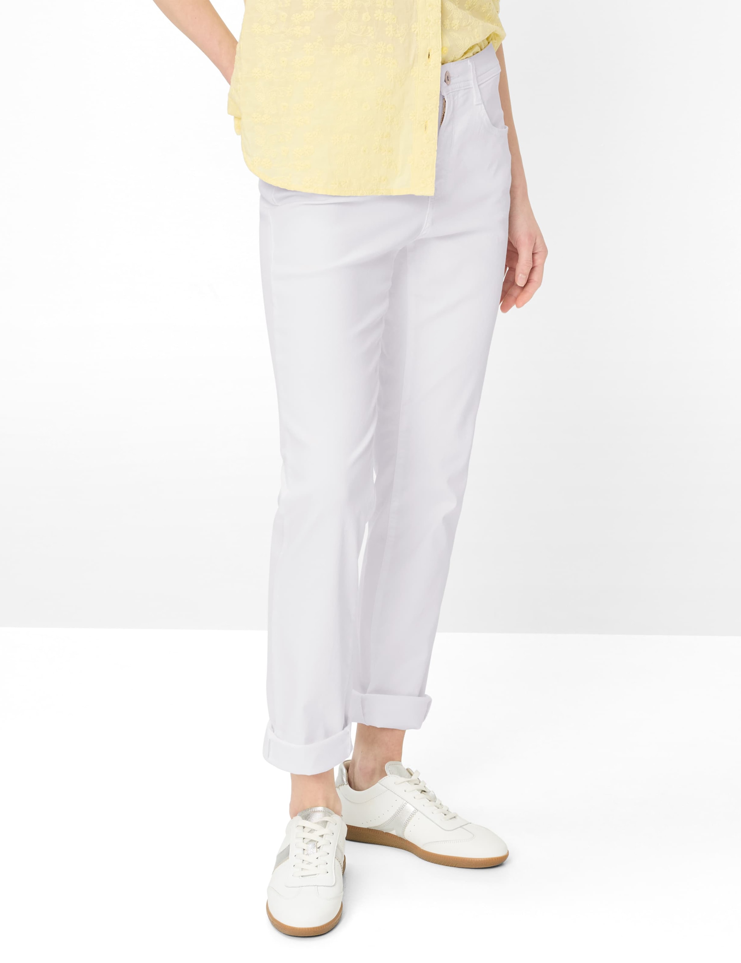 Setzen Sie ein modisches Statement mit der Five-Pocket-Jeans STYLE MARY, die perfekt den aktuellen Zeitgeist trifft. Diese trendige Hose besticht durch ihren angesagten Regular Bootcut, der mit einer leicht ausgestellten Silhouette eine wunderbar feminine Figur zaubert und Ihre Beine optisch streckt. Die normale Leibhöhe sorgt dabei für einen stets bequemen Sitz. Klassische Elemente wie die charakteristischen aufgesetzten Gesäßtaschen, die Coinpocket und die Einschubtaschen unterstreichen den typischen Jeans-Charakter der Damenhose. Dezente Used-Effekte verleihen dem Design zudem eine lässige und moderne Note. Dieser coole Look wird durch ein angenehmes Tragegefühl ergänzt. Der hochwertige Baumwollmix liegt weich auf der Haut und bietet dank des leichten Stretch-Anteils die nötige Bewegungsfreiheit. Gefertigt aus einem kernigen Denim, überzeugt die Damenjeans durch ihre authentische Optik und ist gleichzeitig robust sowie strapazierfähig. So wird diese Jeans schnell ein Must-have für vielfältige Outfits.