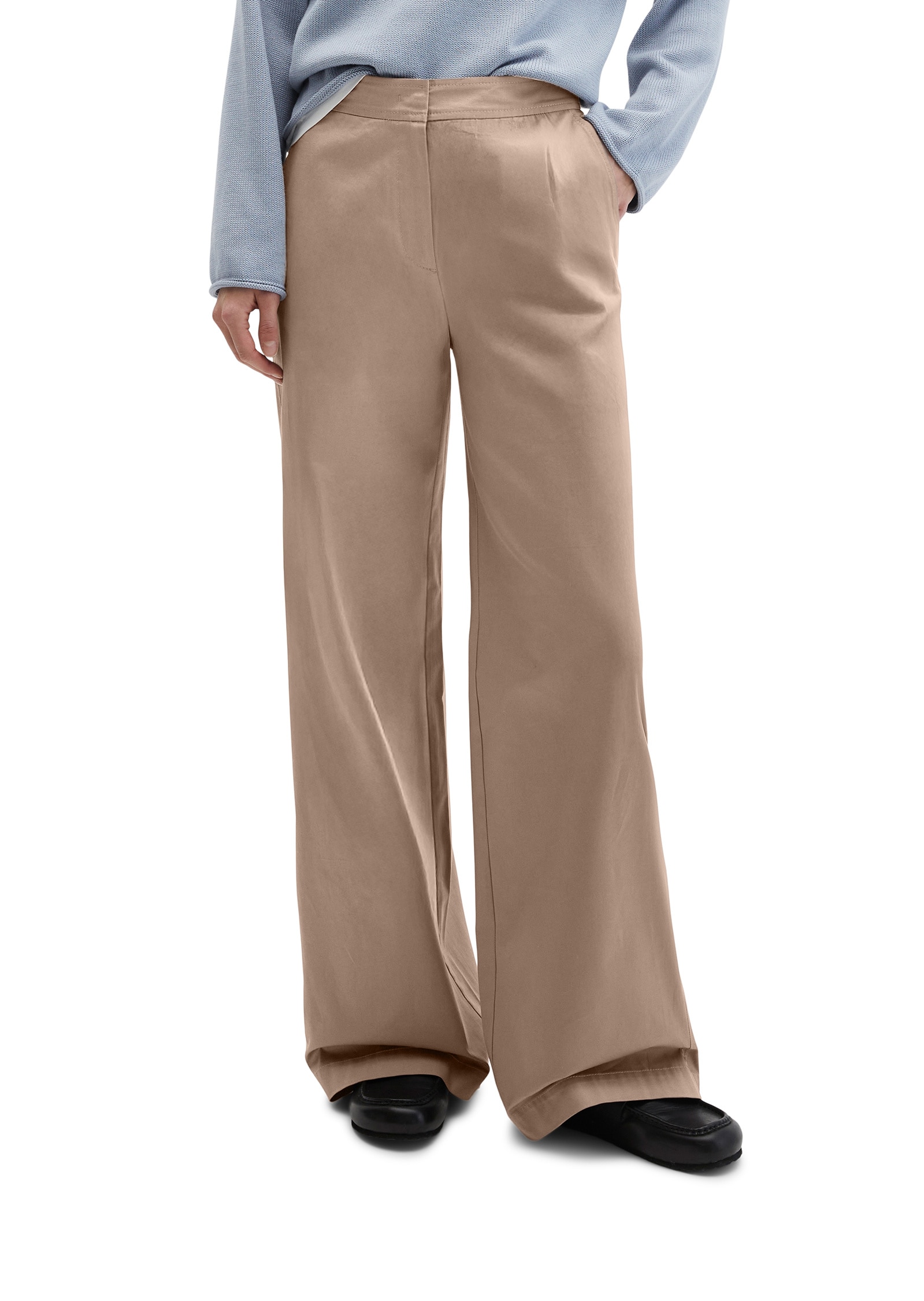 Die Hose Model Margo wide ist Teil einer Kollektion aus charakterstarken Fits, die zeitloses Design und langlebige Qualität mit besonderem Tragekomfort verbinden. Fits, die jede Saison funktionieren - verlässlich, klar, durchdacht - gefertigt aus Premium-Materialien und mit einem Auge für besondere Details. Die Hose hat einen modernen, weiten Schnitt mit normaler Leibhöhe und lässig langen Beinen. Sie setzt Taille und Beine gekonnt in Szene und ist damit die perfekte Alternative zur klassischen Jeans. Sie verfügt über eine cleane Bundverarbeitung, schräge Eingrifftaschen vorne und zwei geknöpfte Paspeltaschen hinten. Das Material ist ein sanft gebürsteter Stretch-Twill aus einem hochwertigen Bio-Baumwoll-Mix.