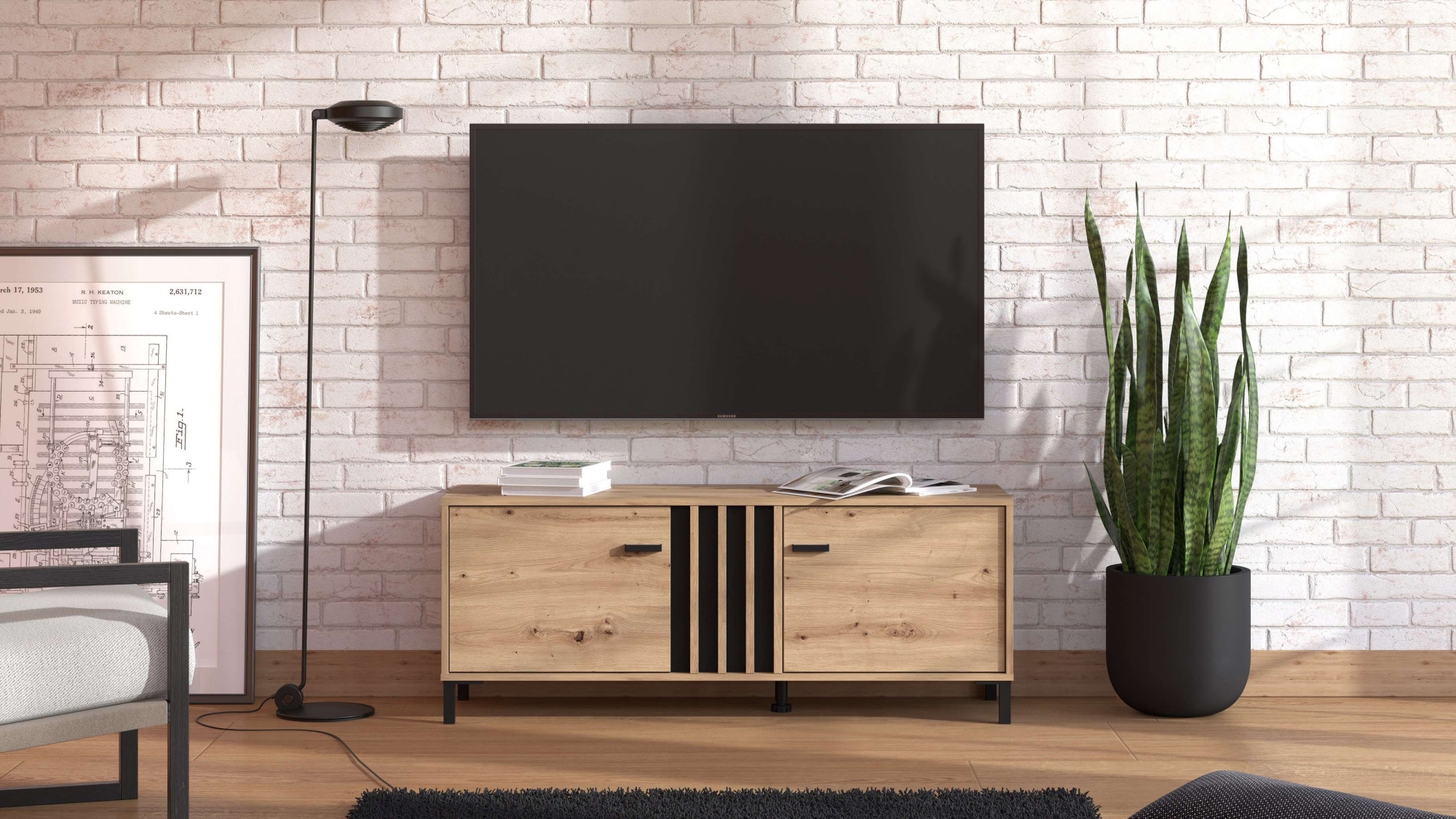 - Das TV-Regal ist eine funktionale Ergänzung für das Wohnzimmer, die durch ihre moderne Lamellen-Optik direkt ins Auge fällt.