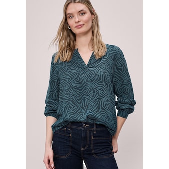 Die Bluse von Street One für Damen begeistert mit einem floralen Muster und einem dekorativen String-Detail am Split Neck. Die weiche Viskosequalität schenkt dir ein angenehm leichtes Tragegefühl, während seitliche Schlitze im Saum für zusätzliche Bewegungsfreiheit sorgen. Die Kurzarmform macht das Design sommerlich und feminin. Ein komfortables Blusenshirt für moderne Casual-Looks.