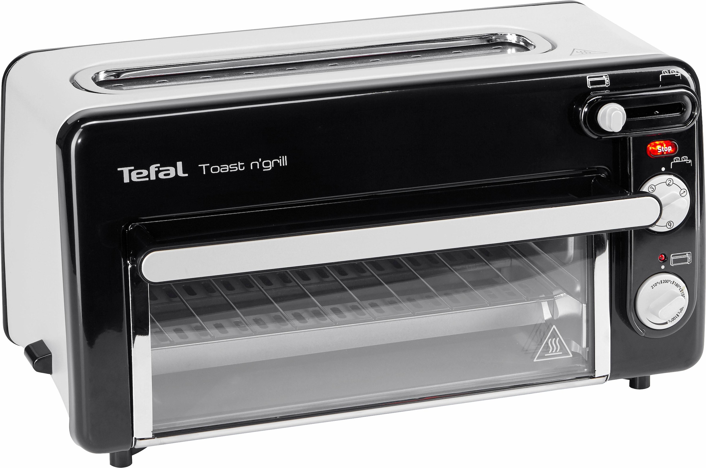 Entdecken Sie den Toast'n'Grill Toaster und Ofen; gleich zwei Funktionen in nur einem Gerät von Tefal. Nutzen Sie die Toaster-Funktion mit dem extra langen Toastschlitz für Ihr perfektes Frühstück jeden Morgen. Dank der sechs einstellbaren Bräunungsgrade erhalten Sie immer den Toast oder Ihr Lieblingsbrot so, wie Sie es mögen. Nutzen Sie die Ofen-Funktion zum Backen, Aufbacken, Überbacken und Aufwärmen und freuen Sie sich über das schnelle Aufheizen, die kurzen Garzeiten und vielfältige Zubereitungsmöglichkeiten mit nur einem Gerät. Backblech und Rost sind inklusive. Das wärmeisolierte Gehäuse und der extra große Griff bieten Ihnen ein hohes Maß an Sicherheit bei 1.300 Watt. Wechseln Sie die Funktionen nach Ihrem Belieben. Das kompakte, zeitlose Design gliedert sich garantiert passend in Ihre Küche ein und bietet Ihnen große Möglichkeiten auf kleinem Raum.