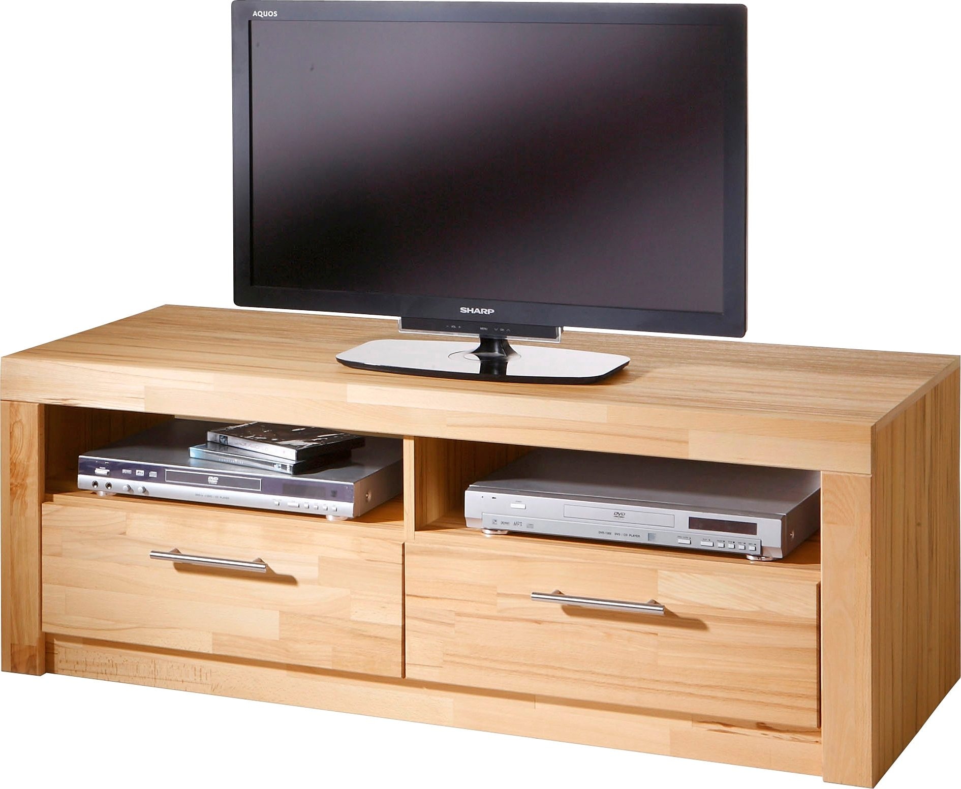 | Wissenswertes | Zeitloses Wohnmöbelprogramm von hoher Qualität, in meisterhafter Verarbeitung und aktueller Rahmenoptik. Korpus kernbuche- oder wildeichefarben. Fronten Kernbuche oder Wildeiche massiv, geölt. Schubkästen auf Rollschubführung. Hochwertige Metallgriffe. 2 offene Fächer, Innenmaße (B/T/H): je 55/50/14 cm, und 2 Schubkästen. Gesamtmaße (B/T/H): 125/52/47 cm. Alles ca.-Maße. Selbstmontage mit Aufbauanleitung. |