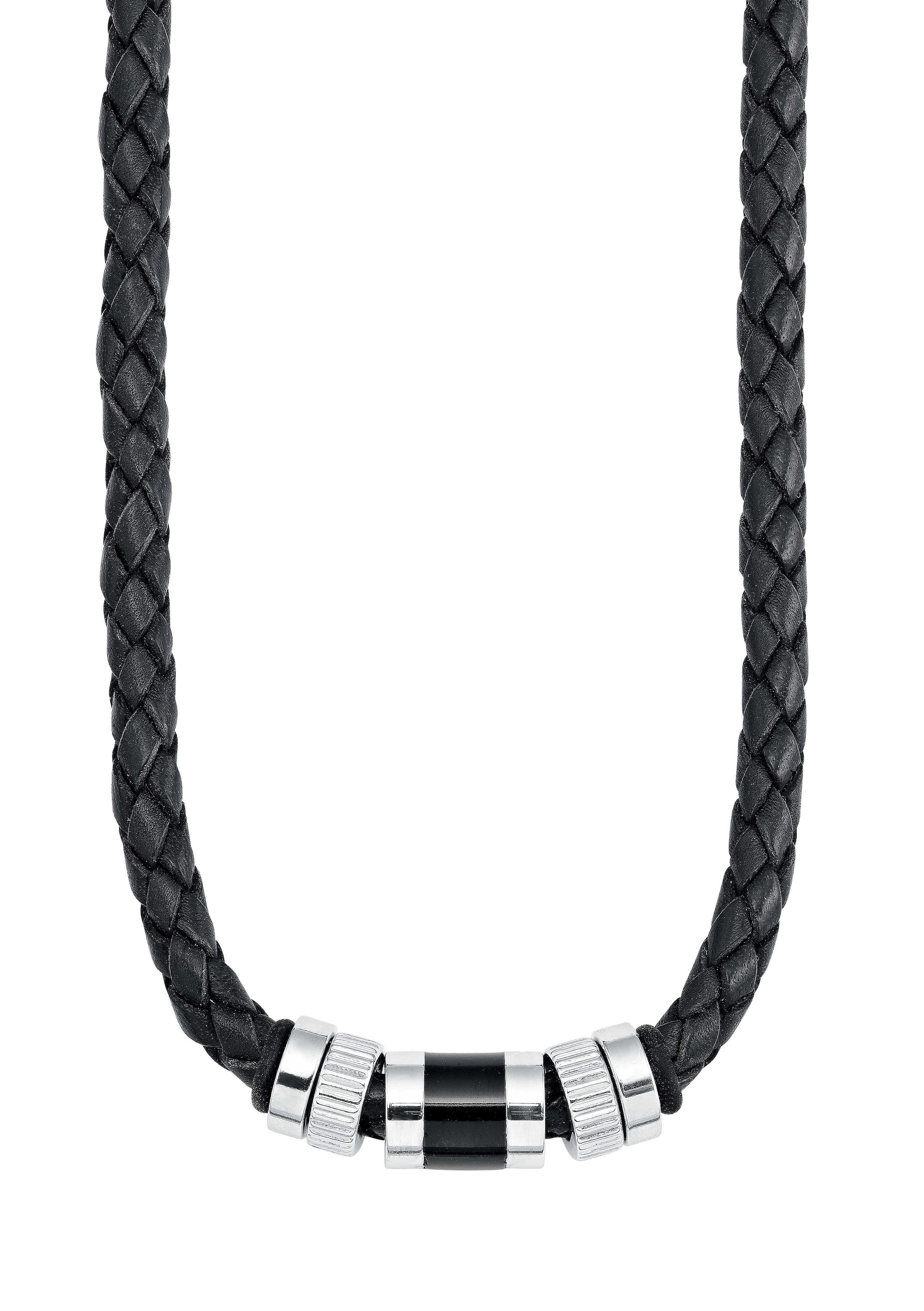 Mit diesem Eye-Catcher liegen Sie voll im Trend! Lässig und erfrischend anders präsentiert sich dieser Herrenschmuck. Perfekt ergänzt sich das schwarze, geflochtene Lederband mit dem glänzenden Edelstahl.