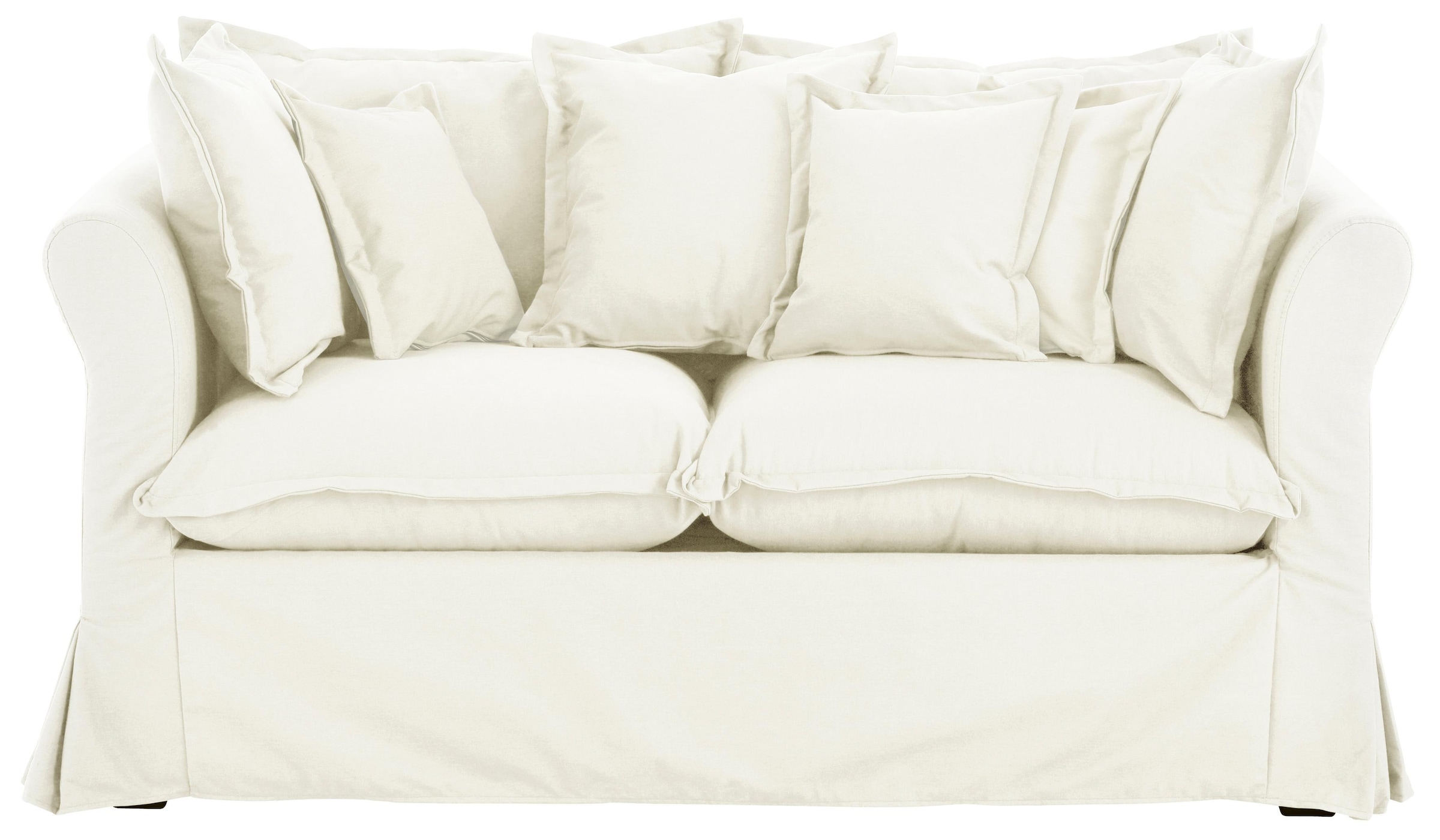 Polstermöbel im romantischen Landhausstil. Das FSC®-zertifizierte Holzgestell und die komfortable Wellenunterfederung in Kombination mit der atmungsaktiven Polyätherschaum-Polsterung sorgen für einen sehr guten Sitzkomfort. Frei im Raum stellbar.Abnehmbare Hussen aus 50% Baumwolle, 50% Polyester.