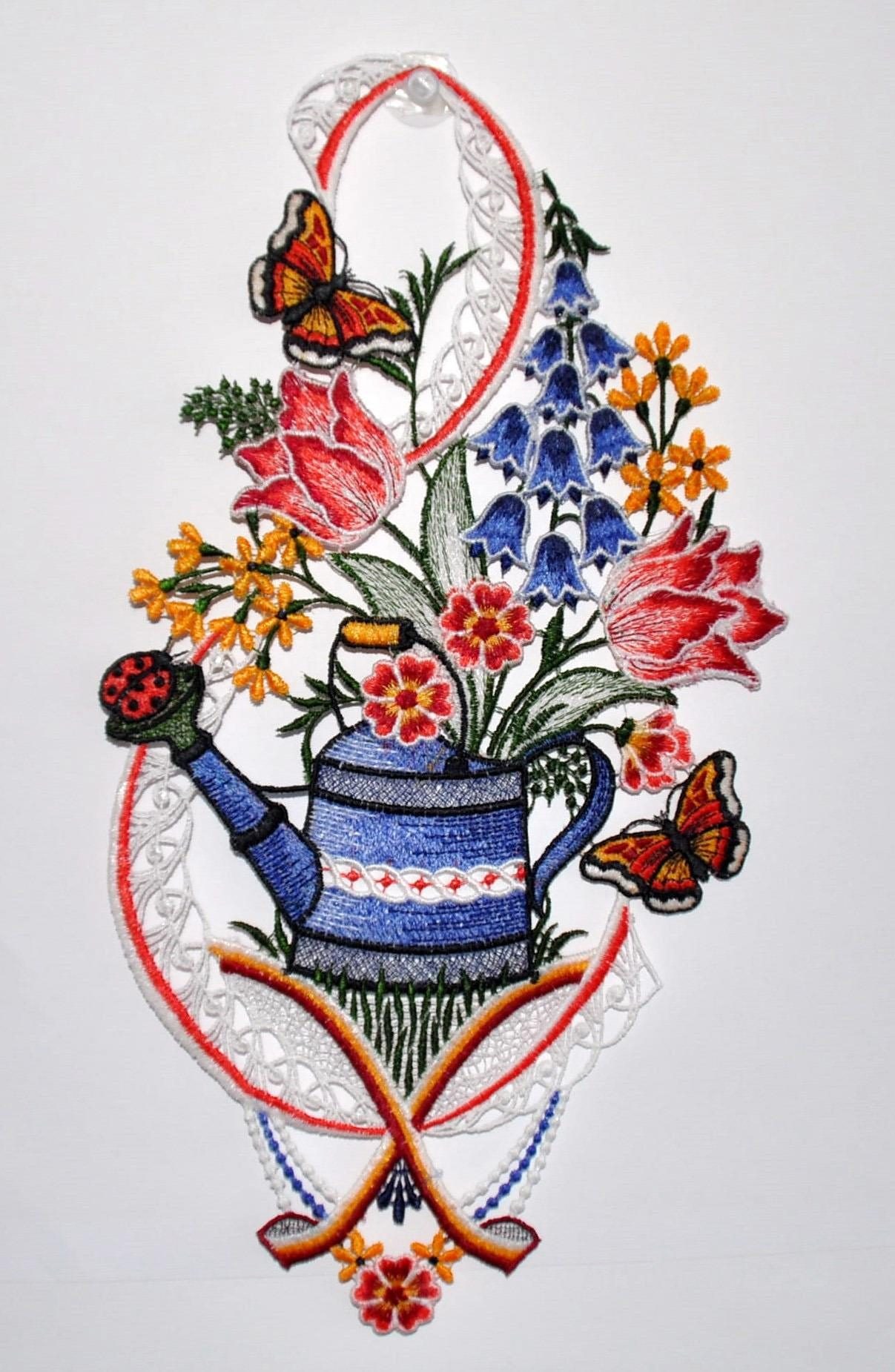 Stickereien Plauen Fensterbild »Fensterbild Gießkanne« Echte Plauener Spitze