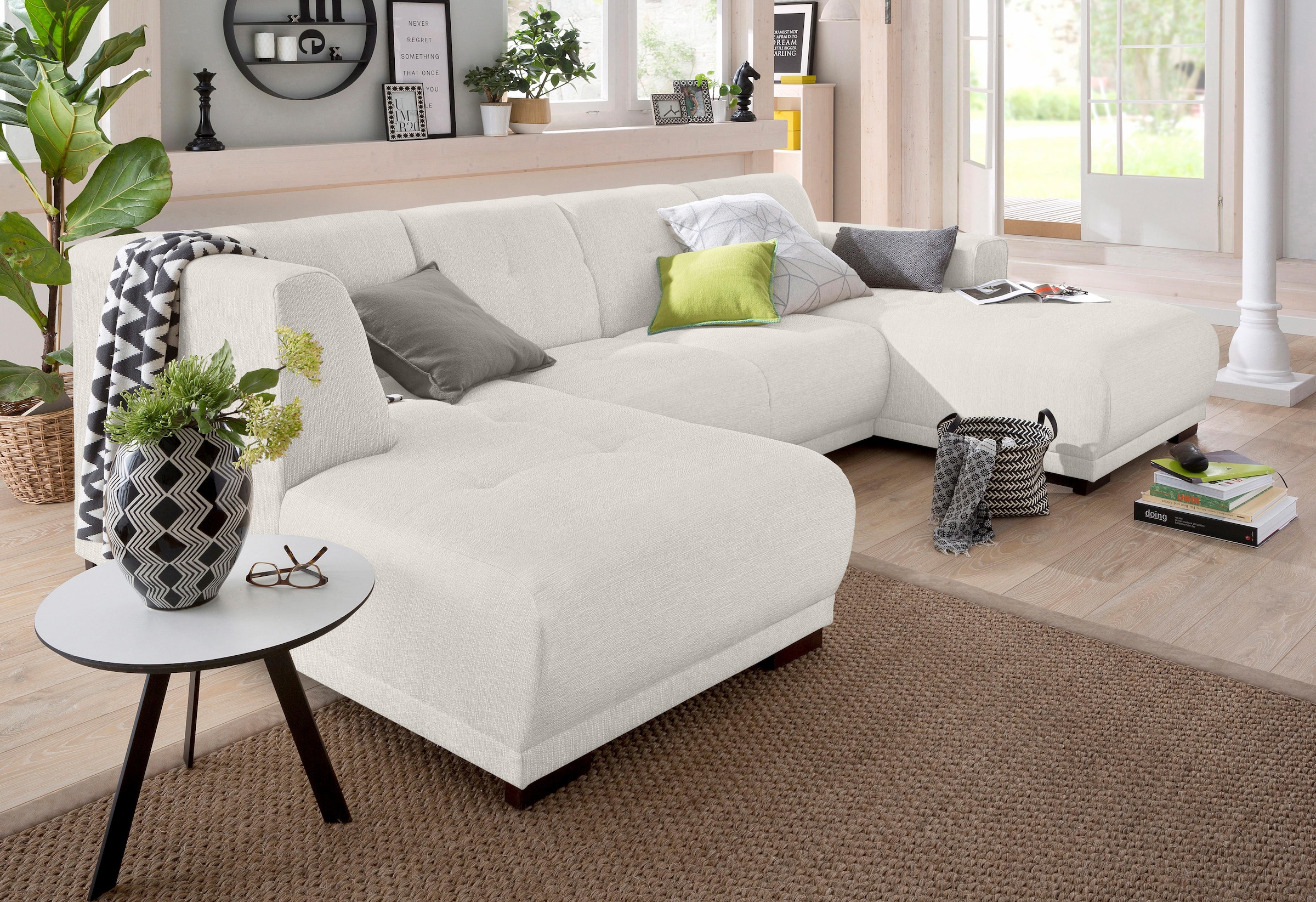 Home affaire Wohnlandschaft »Langeland U-Form« incl. 2 Zierkissen, Recamiere wahlweise links oder rechts