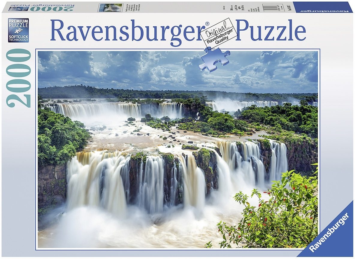 Ravensburger Puzzle, 2000 Teile, »Wasserfälle von Iguazu Brasilien«. Wer schon einmal die berühmten Wasserfälle von Iguazu in Brasilien gesehen hat, wird das Bild des berühmten Weltkulturerbes wohl kaum mehr aus seinem Kopf bekommen. Die riesigen Wassermassen, die sich entlang des Teufelschlunds in die Tiefen stürzen, bilden das eindrucksvolle Motiv des Ravensburger Qualitätspuzzles. Durch die innovative Softclick Technologie ist atemberaubender Puzzlespaß sicher garantiert! Details: 2000 Teile, B/H: ca. 98/75 cm, Softclick Technologie. Altersempfehlung ab 14 Jahren.