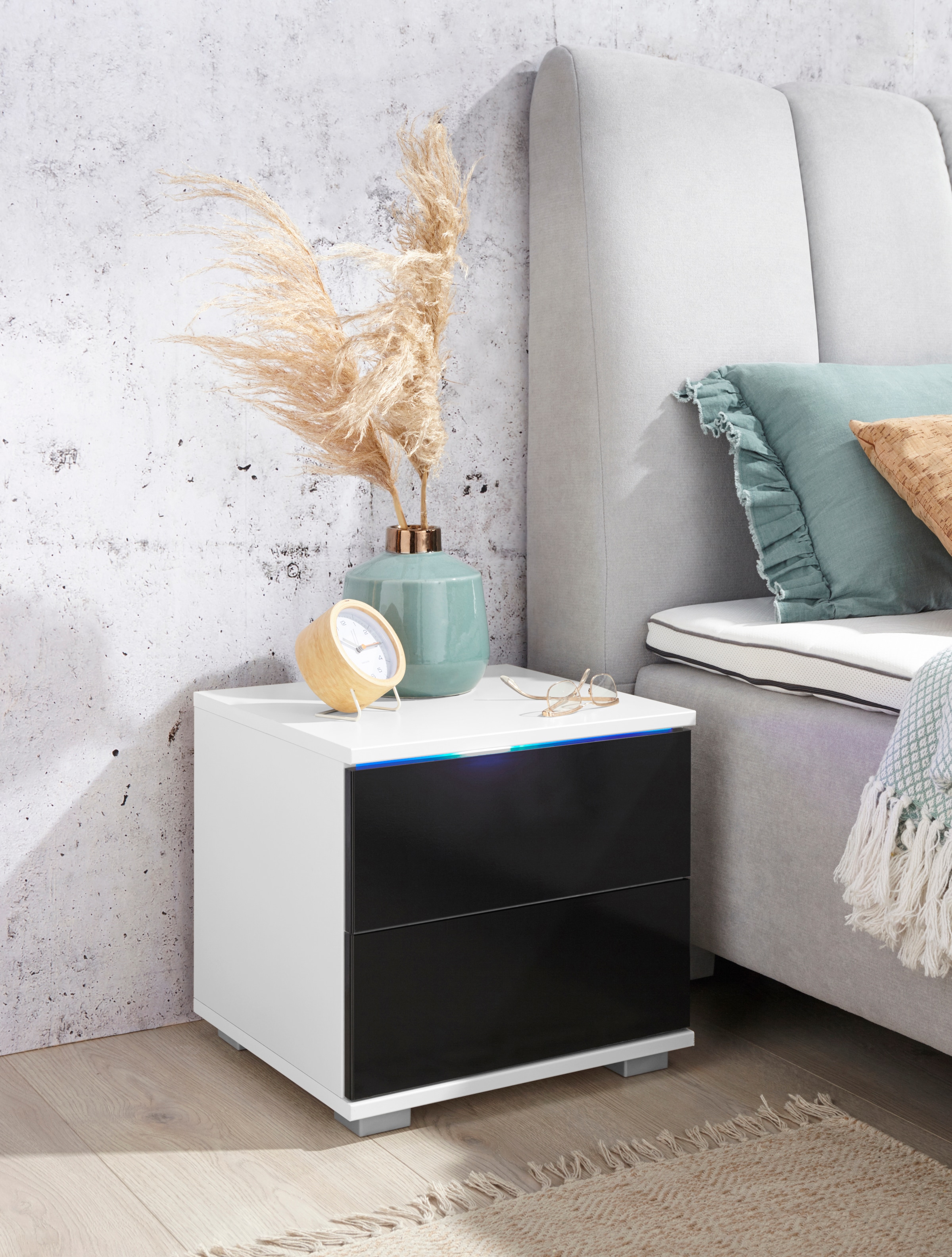 priess Nachtkommode mit LED-Beleuchtung und Push-to-open