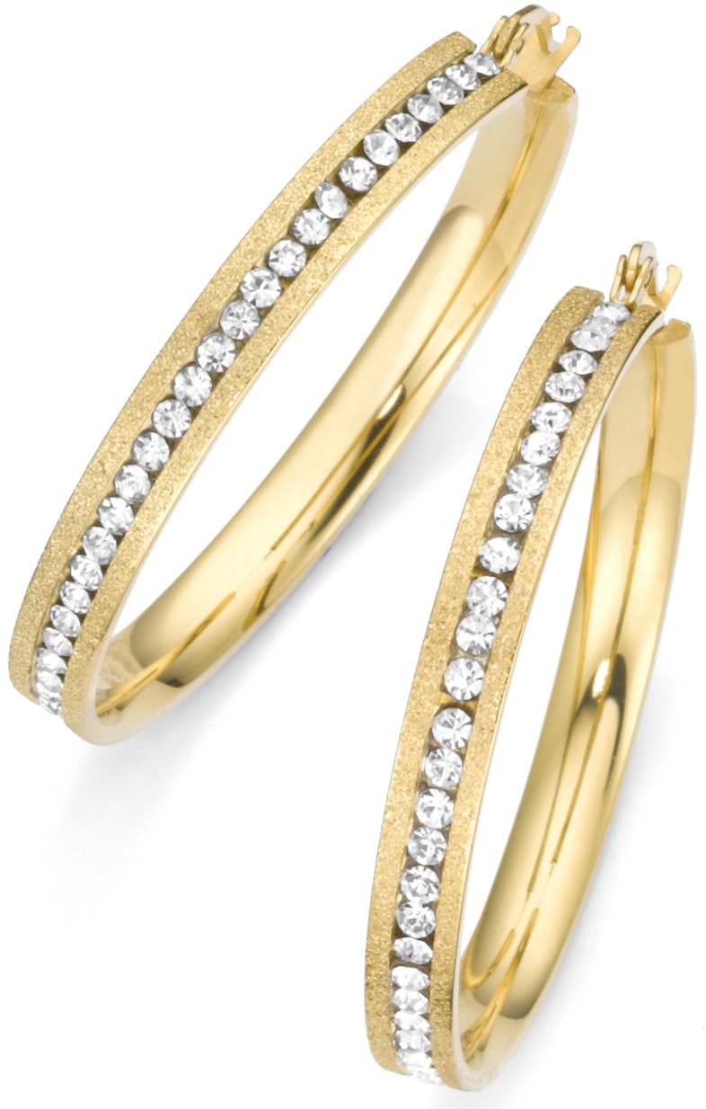 Firetti Paar Creolen »Schmuck Geschenk strukturiert« mit Zirkonia (synth.)