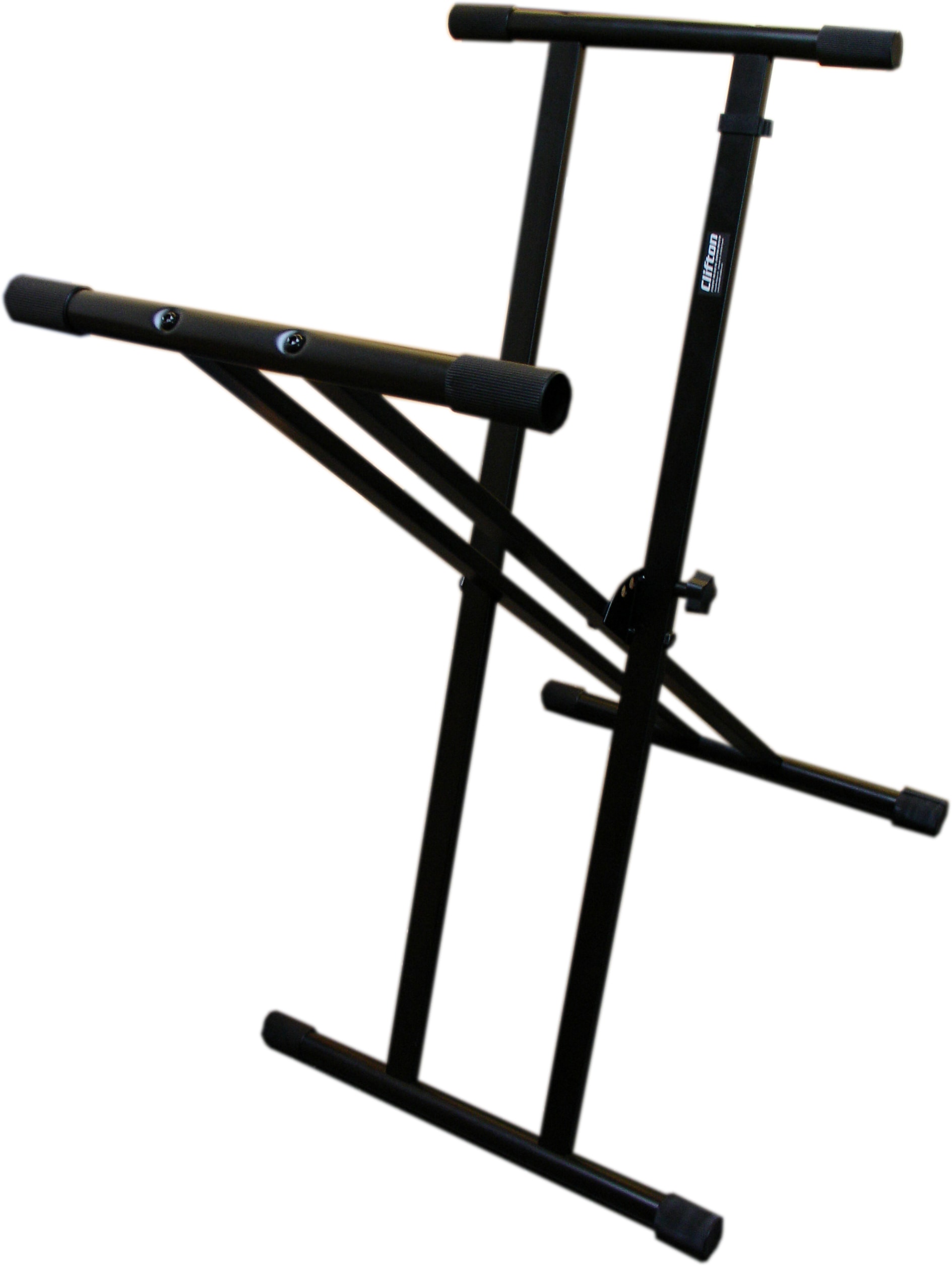 Clifton Keyboardständer, »Keyboardstand double cross«. Der ideale Platz für ein Keyboard ist ein passender Keyboardständer. Hier hat man die Möglichkeit, die Höhe in 5 Stufen einzustellen, sodass jeder Musiker die perfekte Position findet. Der stabile Ständer trägt Keyboards mit einem Gewicht von bis zu 45 kg. Damit sicherer Stand gewährleistet ist, kann man Bodenunebenheiten durch verstellbare Gummifüße ausgleichen. Maße (zusammengeklappt) B/T/H: ca. 11/11/110 cm. Für Keyboards bis 45 kg. 5-fach höhenverstellbar mit professionellem Raster. Minimale Höhe: 63 cm. Maximale Höhe: 97 cm. Bodenunebenheiten können ausgeglichen werden.