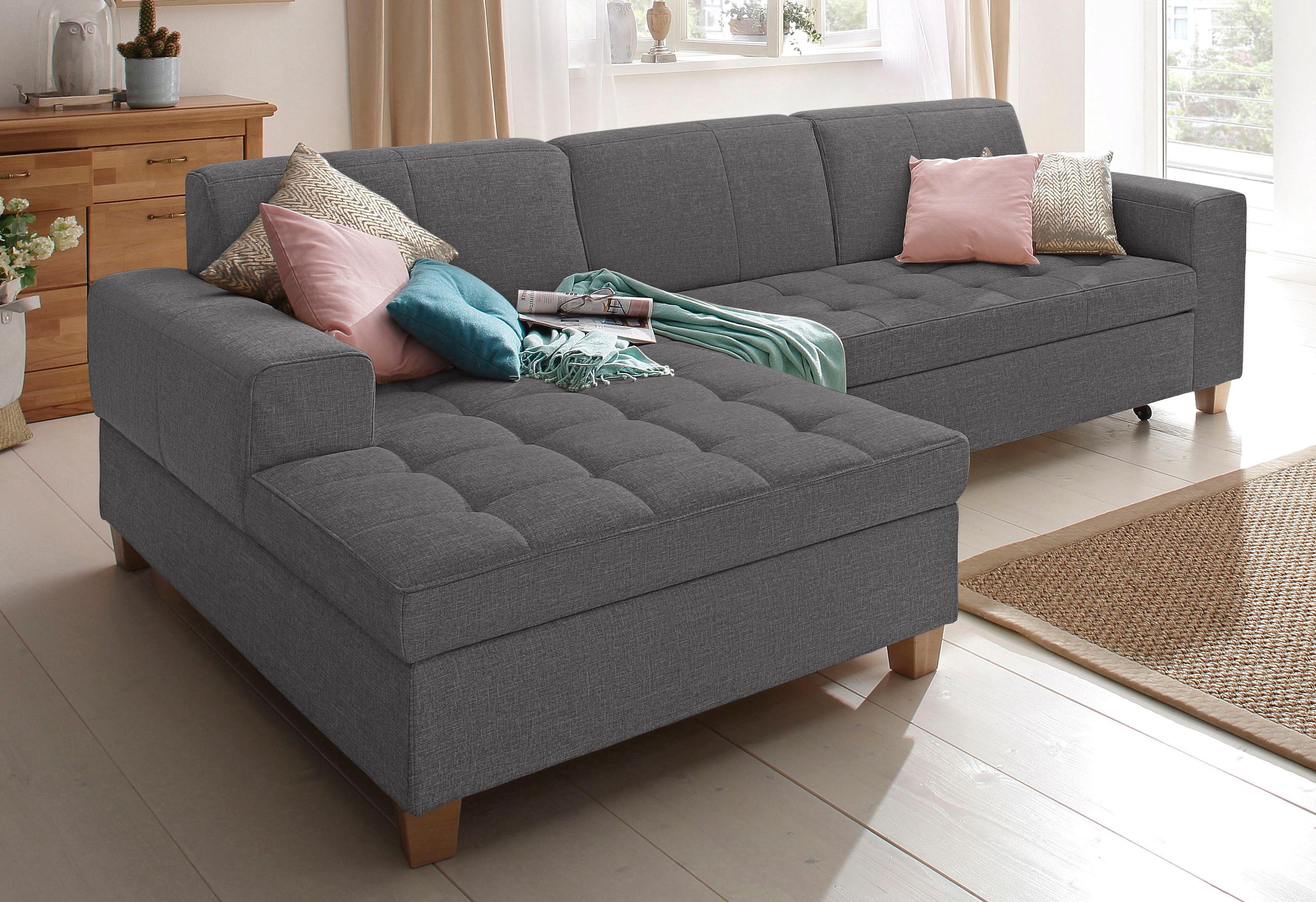 Home affaire Ecksofa »Corby L-Form« wahlweise mit Bettfunktion, Steppung auf Sitzfläche