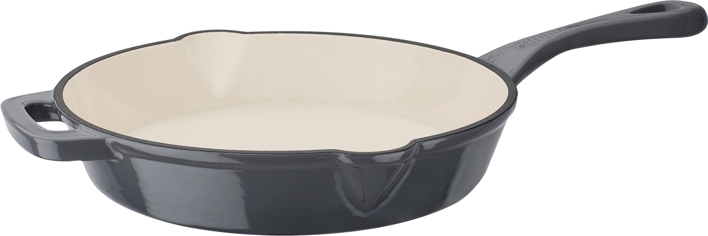 GSW Pfanne »GREY« mit 2 Ausgüssen in schwerer Guss-Ausführung für gleichmäßige, energiesparende Wärmeverteilung und lange Wärmespeicherung. Immer optimalen Kontakt zur Heizfläche und lebenslanger Gebrauch. Mit 2 Ausgüssen und Gegengriff. Außen farbig emailliert, innen beige emailliert. Backofengeeignet bis 240°C.