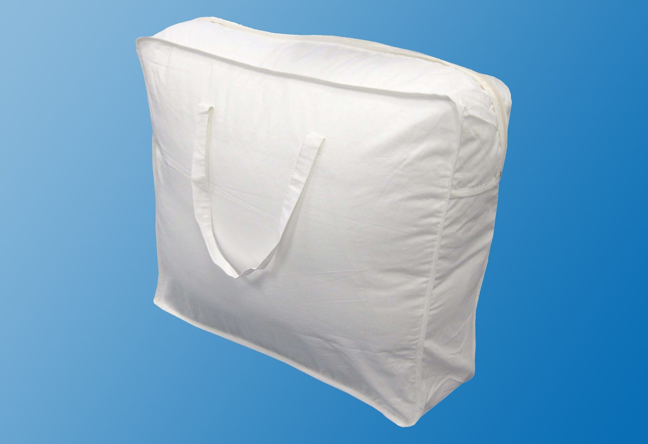 Besonderheiten / Beschreibung: Diese praktische XXXL-Aufbewahrungstasche dient als Aufbewahrungstasche oder Reisetasche. Sie hat zwei breite Tragegriffe und einen langen Reißverschluss. Optimal zum staubfreien Aufbewahren für besonders volumniöse Oberbetten sowie Bettdecken mit 10cm Steg. Das luftdurchlässige Material sorgt für ein optimales Lagerklima. Maße der Tasche: ca.75x60x35cm (BxHxT). Artikeldetails: Material: 100% Baumwolle. Pflegehinweis: 40° Schonwäsche, nicht trocknergeeignet. Lieferumfang: 1 Aufbewahrungstasche.