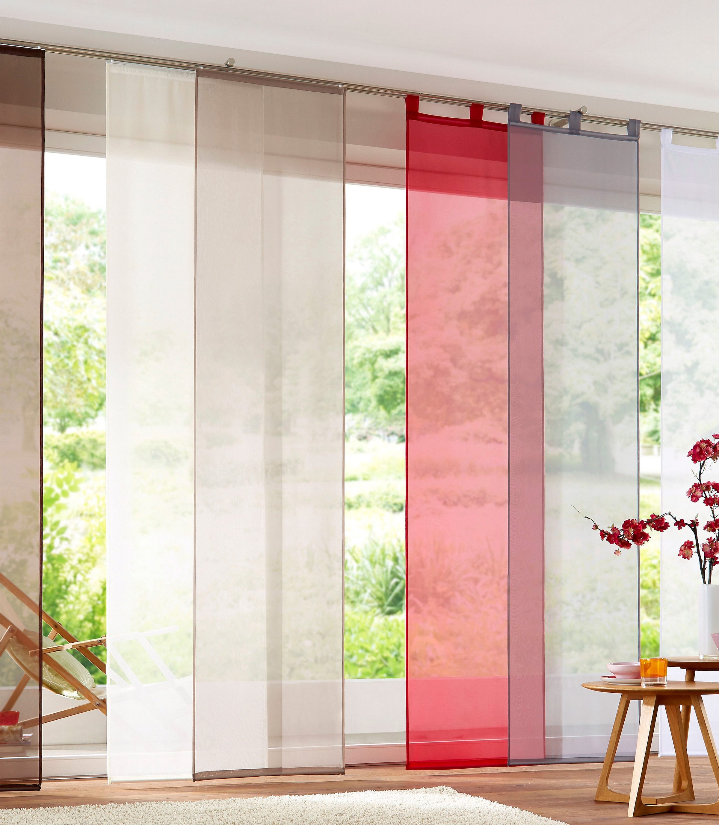 Hinweis Dekoration | Die angegebenen Maße sind Stoffmaße.;Eine Schiebegardine ist eine schmale, glatt hängende Stoffbahn, die sich sowohl als Sichtschutz als auch zur Raumteilung eignet. Durch die Schiebetechnik sind Schiebegardinen sehr flexibel einsetzbar. |