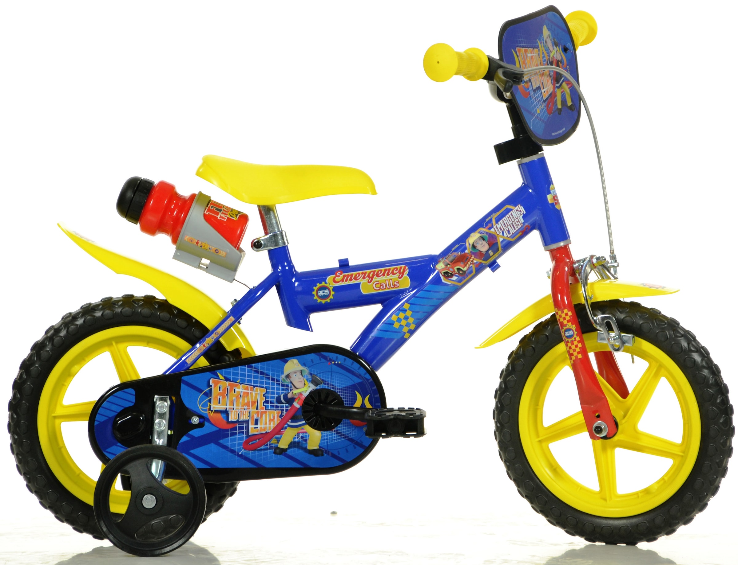 Dino Kinderfahrrad »Feuerwehrmann Sam 12 Zoll« 1 Gang mit Stützrädern, Trinkflasche und Frontschild