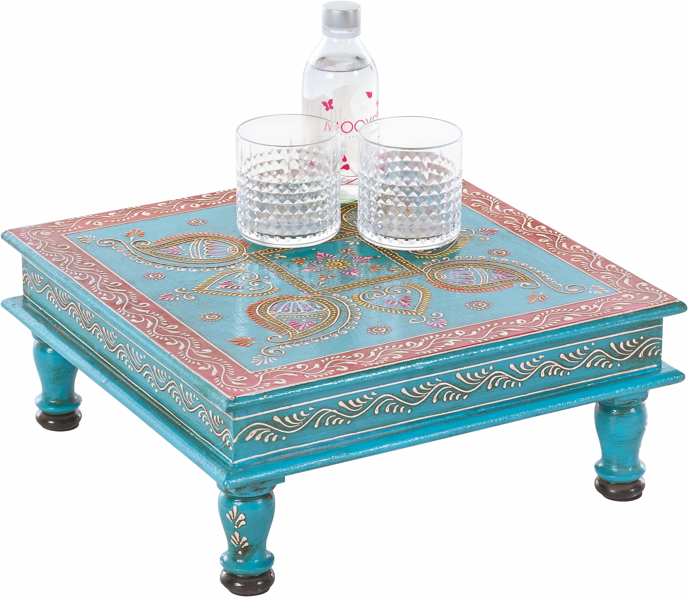 Dieser Beistelltisch macht was her. Aus FSC®-zertifiziertem, massivem Mangoholz. Wunderschön handbemalt. Maße (B/T/H): 40/40/15 cm.
