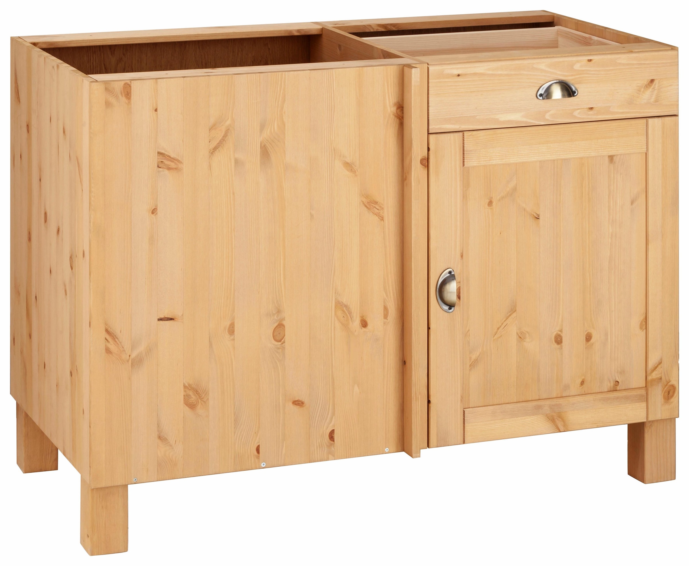 Bildquelle: Home affaire Eckunterschrank »Oslo« 110 cm breit, aus massiver Kiefer, Metallgriffe, Landhaus-Optik