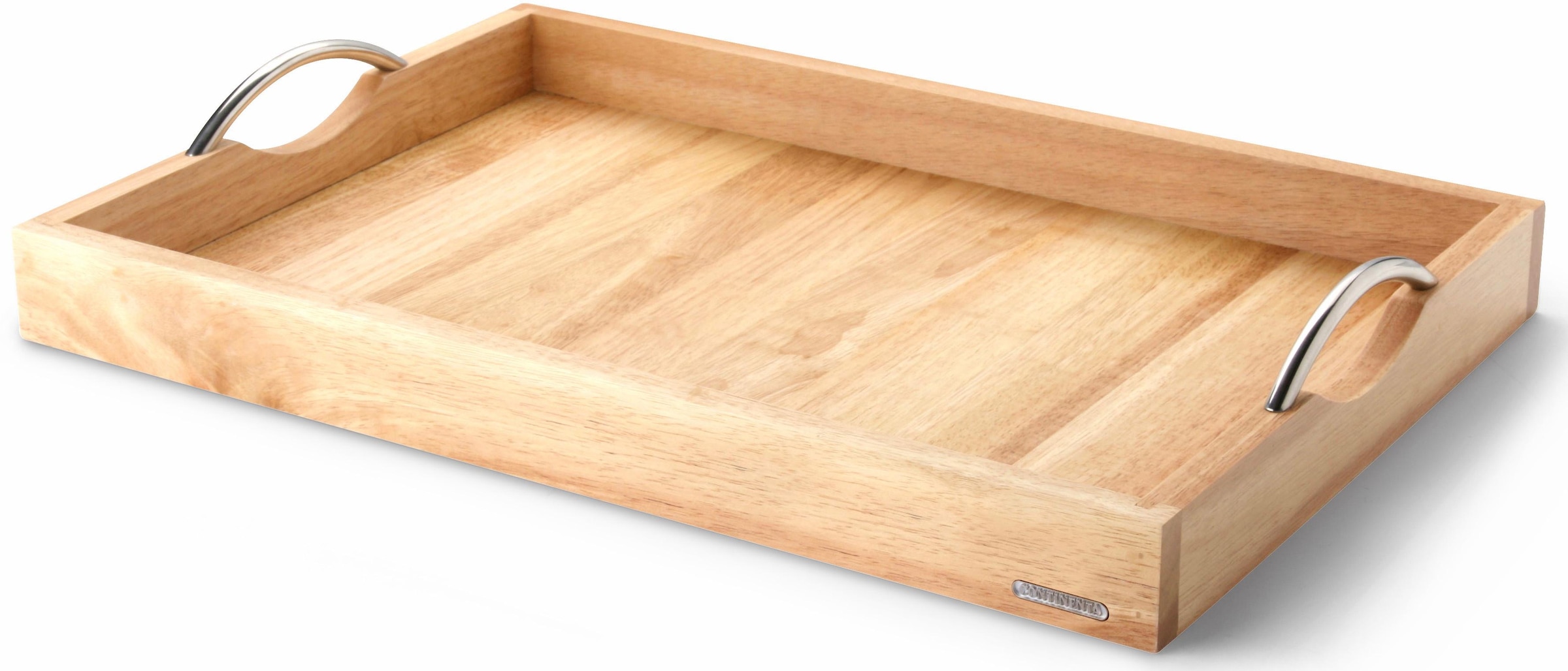 CONTINENTA Tablett aus massivem Hartholz mit stabilen Metallgriffen. Gr. 53 x 36 x 5 cm.