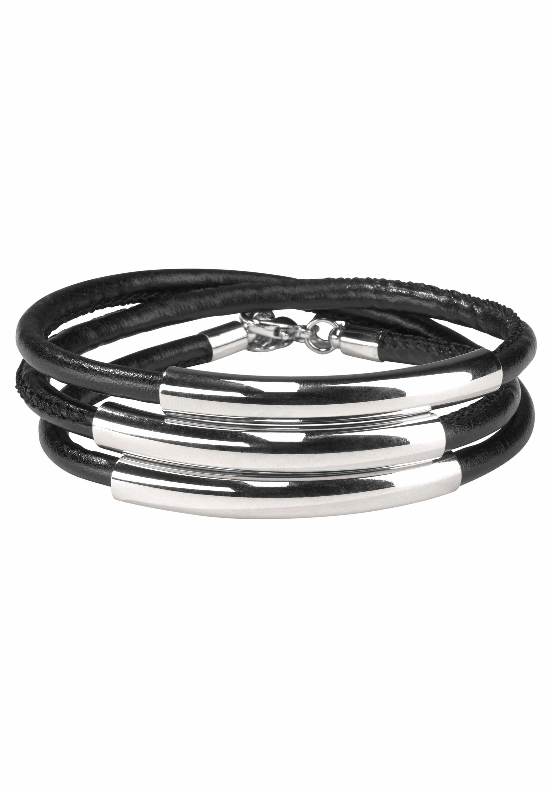 Firetti Wickelarmband »schwarzes Armband zum Wickeln mit Naht und 3 Metallelementen«