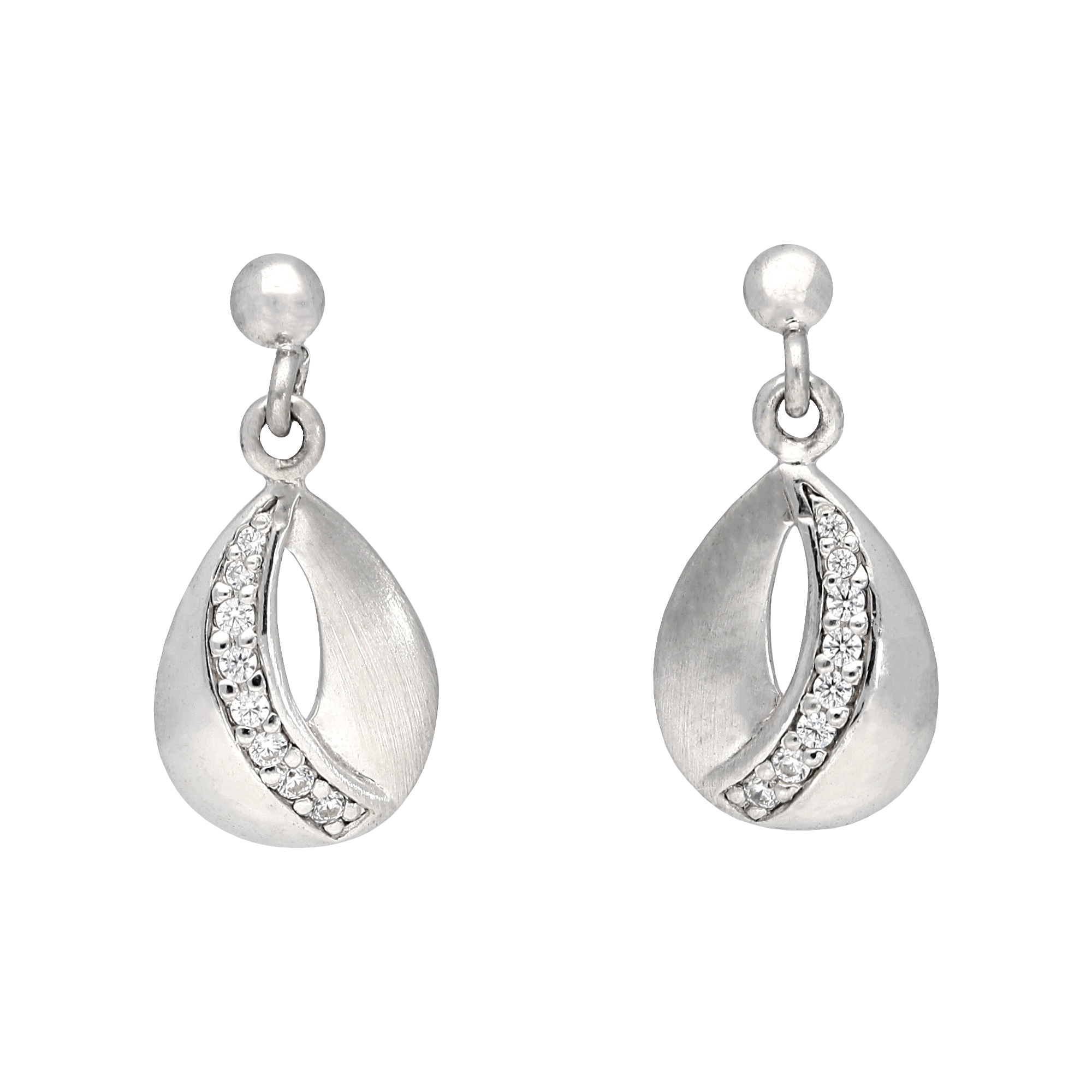 Ohrringe Silber 925 rhodiniert mit 6 weißen Zirkonia Steinen