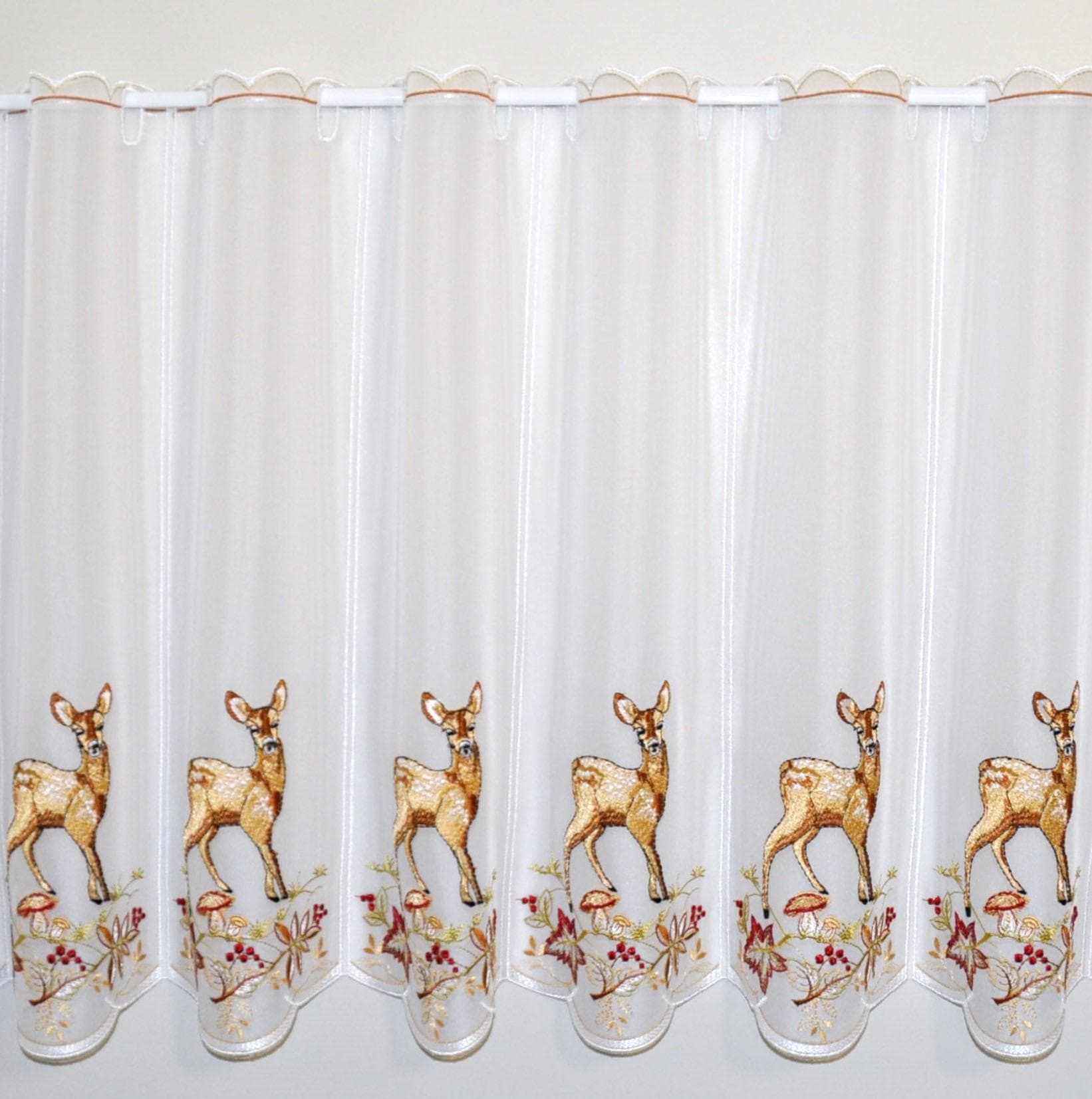 Stickereien Plauen Scheibengardine »Rehkitz im Herbst« Stangendurchzug 1 Stk. tlg.