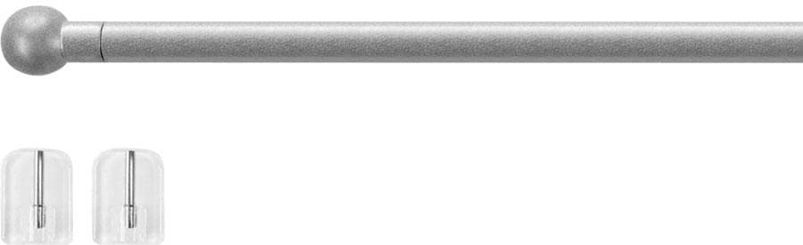 Hochwertige runde Teleskop-Stange aus Metall für eine schöne Fensterdekoration. Die Stange kommt mit Klebehaken für die Befestigung an Kunststoff-, Holz- und Alu-Fenstern. Kein Schrauben nötig, die Halter sind rückstandslos wieder abnehmbar. Mit modernem Kugel-Endstück und etwas größerem Abstand zum Fensterrahmen. Ideal für Scheiben- und Bistrogardinen. . Optik: Metall-Optik. Material Stange: Metall. Material Träger: Kunststoff. Bestandteile: Endstücke. Befestigungsmaterial. Scheibenstange. Stangendurchmesser/ Maßangaben: Ø 10 mm. 1,5 cm Länge Endstück. Belastungsgrenze: 0,35 kg. Ausmessen: Mitte Rahmen links bis Mitte Rahmen rechts. Montage: Ohne Bohren. Für eine gute Klebkraft achten Sie bitte auf einen fettfreien Untergrund. Wissenwertes: Zur Rahmenmontage geeignet und nicht zur Deckenmontage geeignet. Pflegehinweis: Zur Pflege können Sie die Ware vorsichtig mit einem Staubwedel abstauben oder mit einem trockenem Tuch vorsichtig abwischen. Verwenden Sie keine Reinigungsmittel.