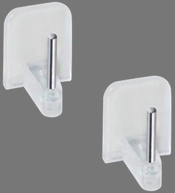 Ersatzhalter für Scheiben- und Vitragenstangen zum Ankleben an Tür- und Fensterrahmen. Auch für leichte Fensterdeko. Der Halterstift hat einen Abstand von 10 mm zur Halteplatte, andere Halteplatten haben lediglich einen Abstand von 5 mm. Die kleinen Halter sind ideal auch zum Befestigen von Deko-Artikeln am Fenster oder an Küchenfliesen. Wiederablösbar. . Material: 95% Kunststoff . 5% Metall . Wissenswertes: für gute Klebkraft achten Sie auf einen fettfreien Untergrund. Nicht für Kleinkinder unter 3 Jahren geeignet.