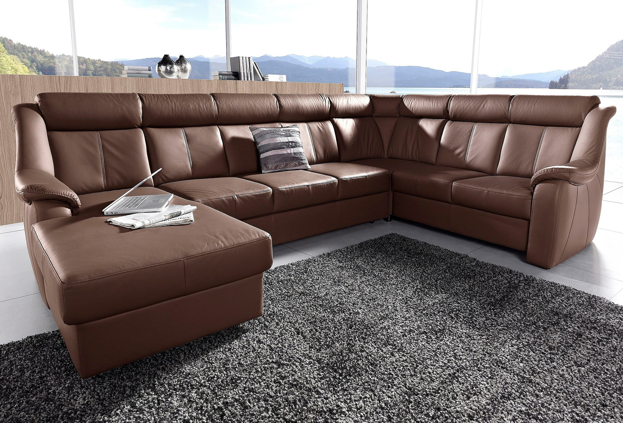 DOMO collection Wohnlandschaft »Norma Top, elegant und modern, flache Armlehnen, komfortabel, U-Form« wahlweise mit Bettfunktion, mit viel Platz