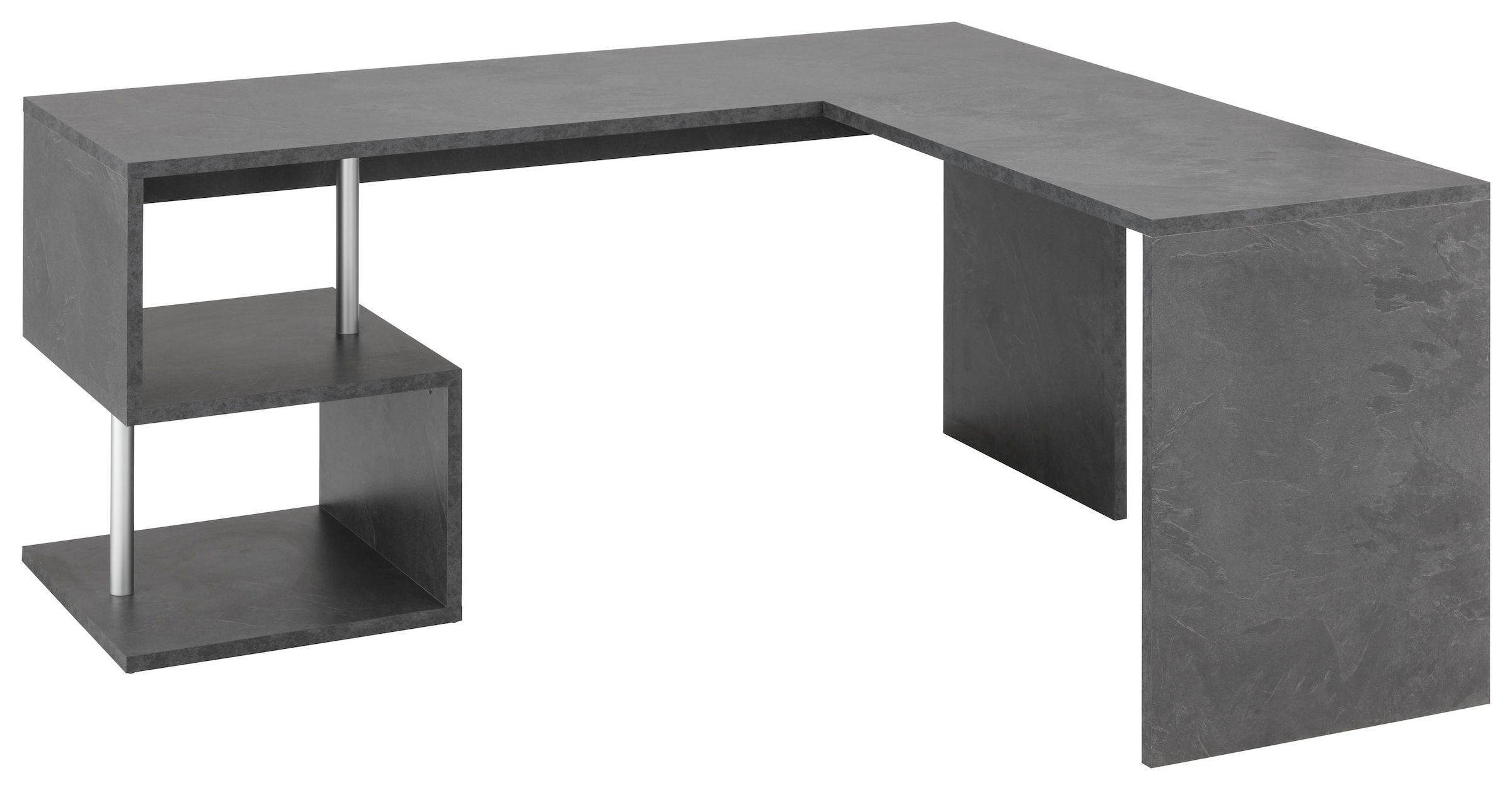 Eckschreibtisch »ESSE» (B/T/H 180x160/60/77,5cm). Aus Holzwerstoff, melaminbeschichtet. Mit 2 offenen Fächern ( Innenmaße B/T/Hje ca. 23/60/35 cm).