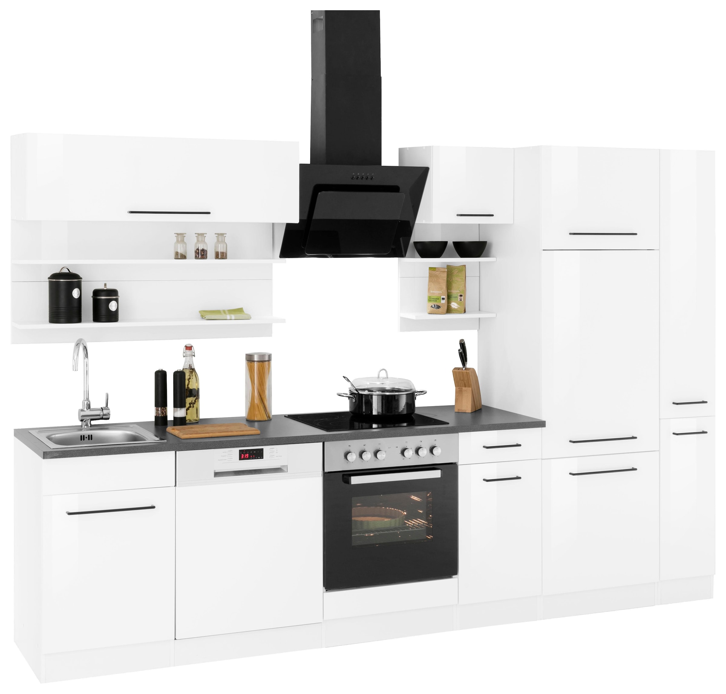 KOCHSTATION Küchenzeile »KS-Tulsa« ohne E-Geräte, Breite 300 cm, schwarze Metallgriffe, MDF Fronten