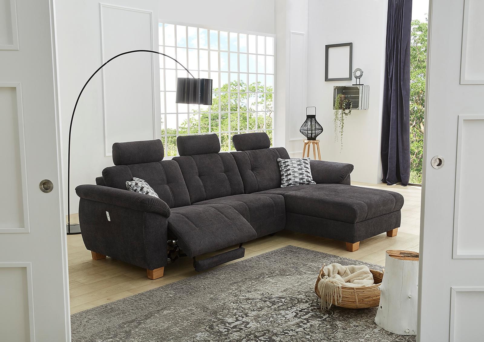 Eine Bereicherung für jedes Zuhause ist dieses Ecksofa mit motorischer Relaxfunktion. Dank der komfortablen Wellenunterfederung und Polsterung lädt das Möbelstück zum Verweilen ein. Für noch mehr Entspannung ist das Ecksofa mit einer zusätzlichen Relaxfunktion erhältlich, diese kann in die Ottomane integriert werden. Besonderes Extra: In der Armlehne befindet sich eine USB-Ladestation - so kann man das Tablet oder Smartphone aufladen, während man es sich bequem macht. Neben diesen Funktionen überzeugt das hübsche Möbelstück auch mit seiner modernen Optik. Die Sofalandschaft ist in verschiedenen Farbkombinationen erhältlich, sodass sie sich perfekt auf die bestehende Einrichtung abstimmen lässt. Da auch die Rückseite mit einem hochwertigen Bezug versehen ist, lässt sie sich frei im Raum stellen. Bequem, schick und praktisch: das Ecksofa mit Relaxfunktion.