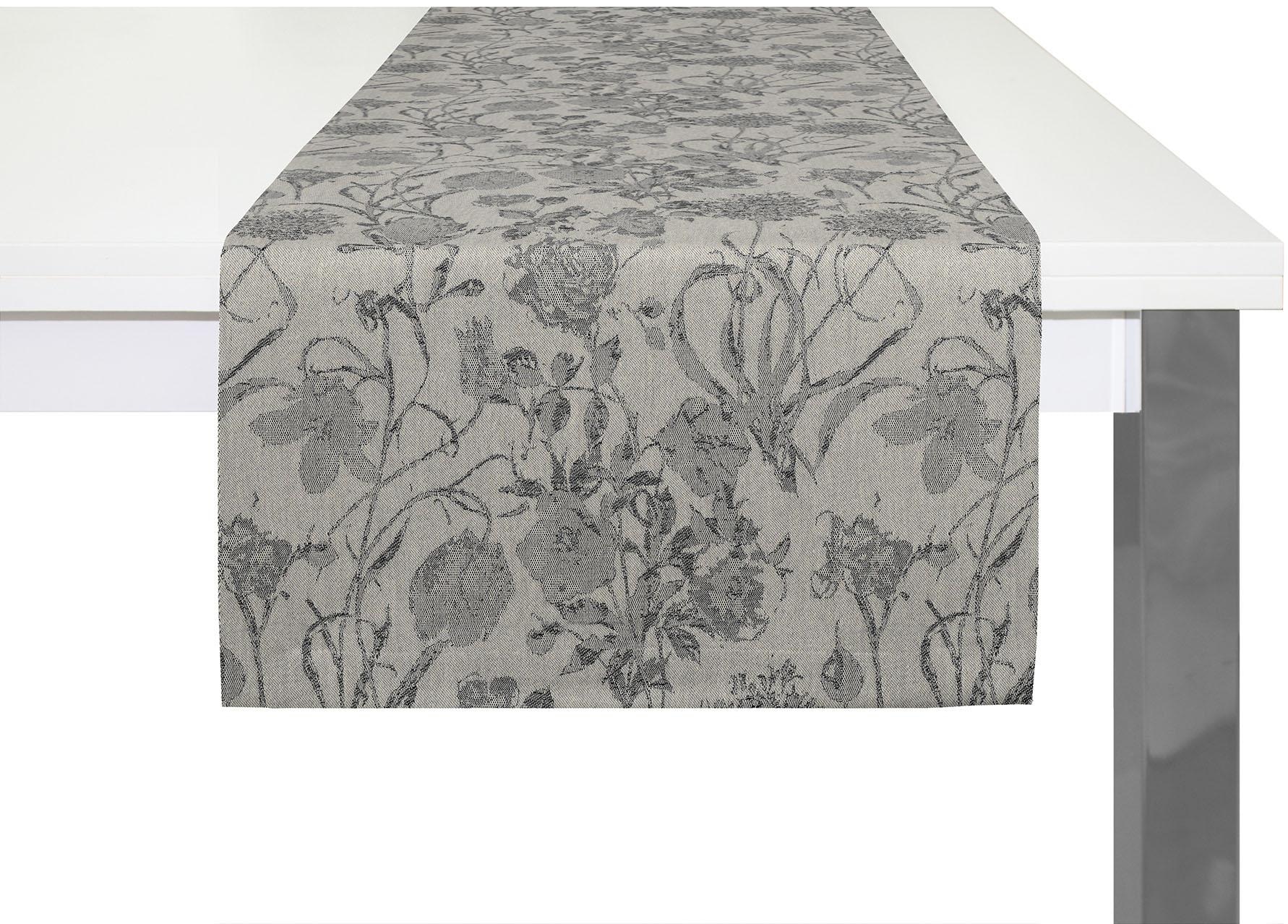 Tischläufer "Flower Cuvée Light" aus 100% GOTS-Bio-Baumwolle. Helles Jacquard-Design und pflegeleicht - für elegante Tischdekoration.