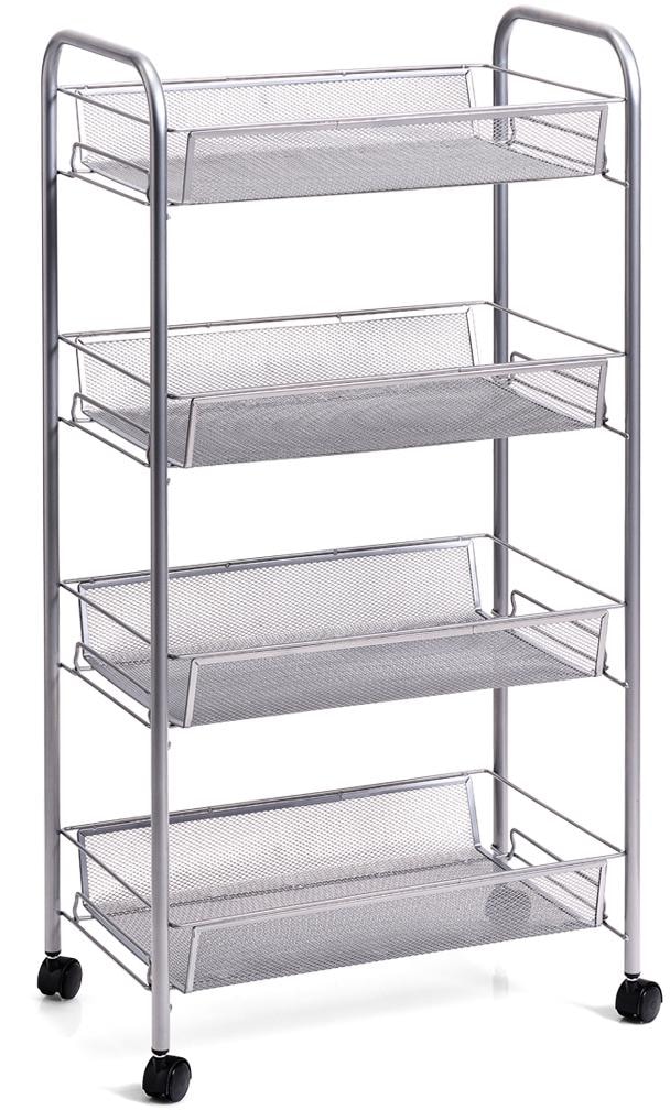 Praktischer Zeller Rollwagen aus Stahlgeflecht. Mit 4 Ablagekörben. Die Rollen sind um 360° drehbar, daher variabel einsetzbar. Ob für Bad, Küche oder Büro- in diesem Rollregal findet alles seinen Platz. Einfache und schnelle Selbstmontage. Höhe 83,5, 42,5 x 26 cm.