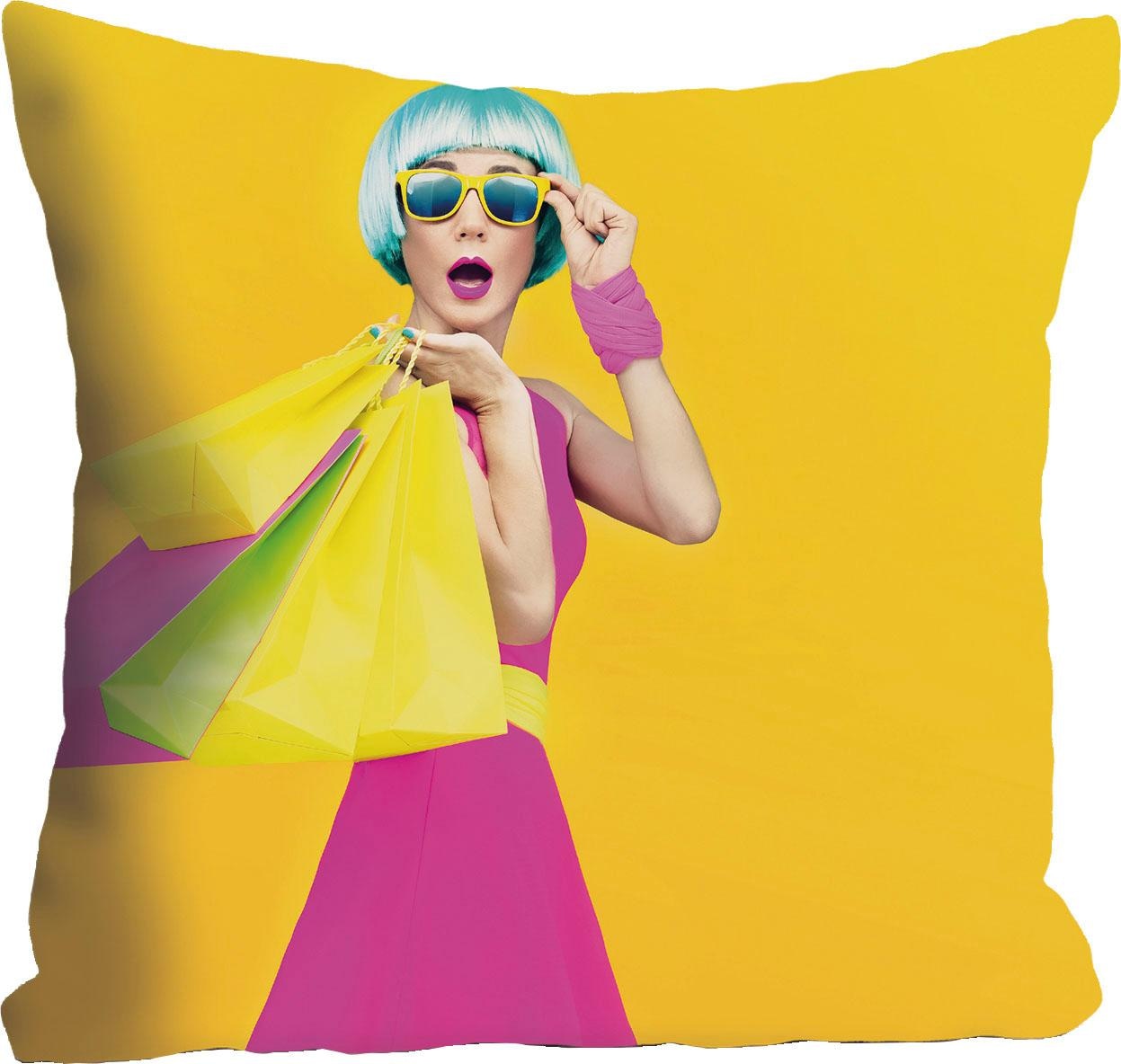 queence Dekokissen »Frau mit Einkaufstüten« mit intensiven Farben, Kissenhülle ohne Füllung, 1 Stück