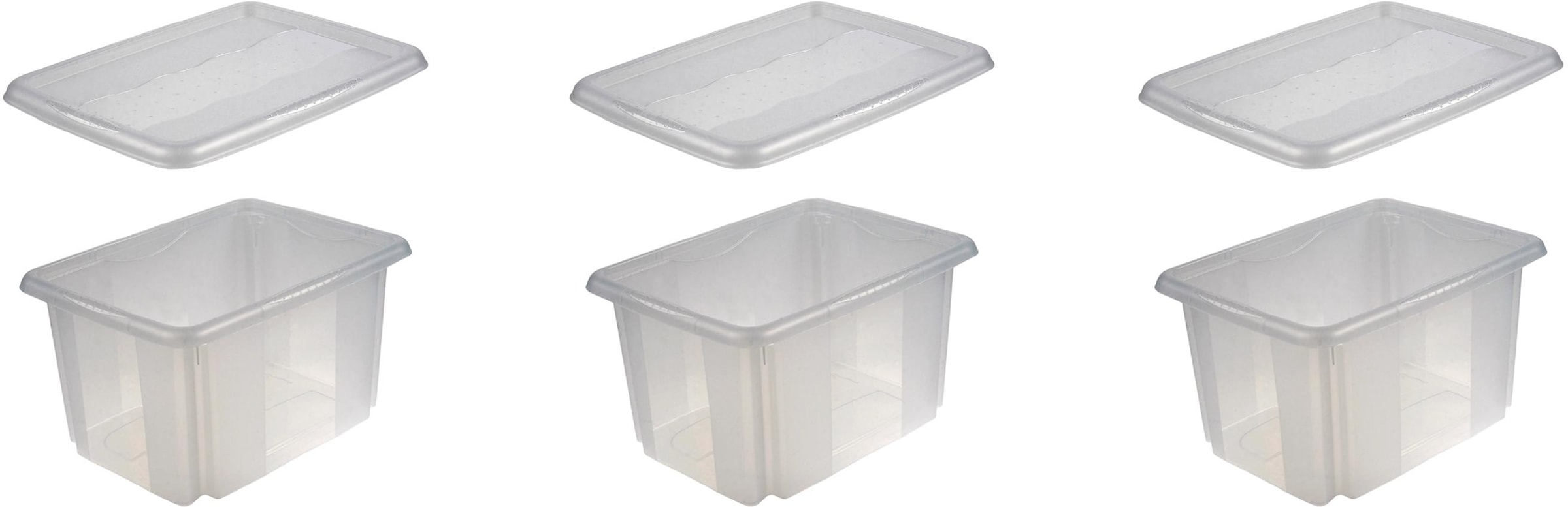 Die Aufbewahrungsbox »emil« von keeeper mit Dreh-/Stapelfunktion sorgt überall im Haushalt für Ordnung. Sie ist ideal zum Aufbewahren, Transportieren und Sortieren der unterschiedlichsten Gegenstände geeignet. Wahlweise ist die Box aufeinander stapelbar oder durch einfaches Drehen um 180° platzsparend ineinander nestbar. Die praktischen Boxen bieten eine nützliche Unterbringungsmöglichkeit für regelmäßig oder sporadisch genutzte Dinge sowie für alle Sachen, die sonst noch keinen richtigen Platz gefunden haben. Produktdetails: Ideal zum Aufbewahren und Sortieren von Hobbyartikeln, Spielzeug und anderen Kleinteilen. Wahlweise aufeinander stapelbar oder platzsparend ineinander nestbar durch einfaches Drehen um 180°. Sicheres Transportieren durch stabile Griffflächen mit strukturierter Oberfläche an allen 4 Seiten. Mit lose aufliegendem Deckel zum staubgeschützten Aufbewahren. Einfache Reinigung. Aus hochwertigem Kunststoff / BPA Frei. Material: Polypropylen (PP). Made in Europa. Das 3-teilige Set besteht aus: 3 Aufbewahrungsboxen mit Deckel, Maße (LxBxH): je 38 x 28,5 x 20,5 cm, Fassungsvermögen: je 15 l.