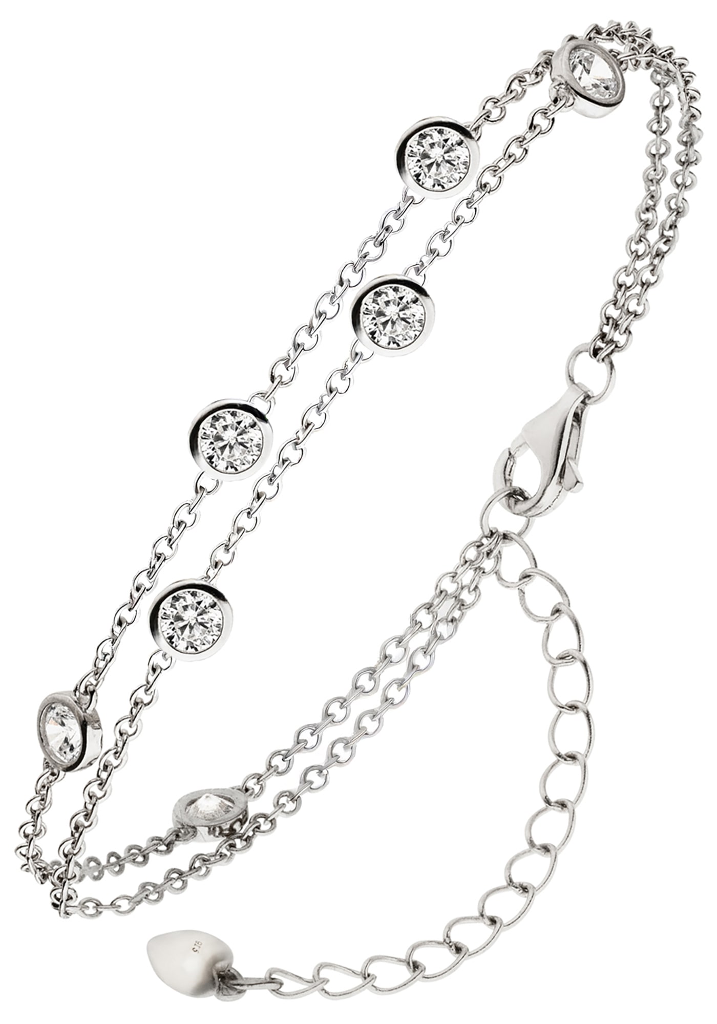 Armband 'Herz' aus 925 Sterlingsilber, rhodiniert, mit 2 Zirkonia und Karabinerverschluss