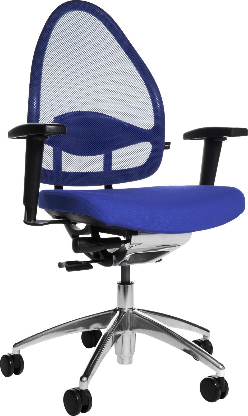 Wissenswertes | Drehstuhl in Netzoptik. Stufenlose Sitzhöhenverstellung mit Toplift. Netz-Rückenlehne mit integriertem Body-Balance-Tec®-Gelenk und höhenverstellbarer Lordosenstütze. Bequemer Komfort-Muldensitz mit abgerundeter Sitzvorderkante. Syncro-Relax-Mechanik mit extra großem Öffnungswinkel, in vorderster Position arretierbar. Design-Fußkreuz Aluminium poliert, ausgerüstet mit lastabhängig gebremsten Sicherheitsdoppelrollen für Teppichböden. Inklusive höhenverstellbare Armlehne »T2(OPA)«. Strapazierfähiger und robuster Stoffbezug aus 100 % Trevira CS - Rückenlehne in Netzgewebe aus 100 % Polyester. Dieses Modell trägt das GS-Zeichen der Intertek in Fürth und erfüllt in diesem Zusammenhang sämtliche sicherheitsrelevanten Voraussetzungen. In folgenden Farben erhältlich: