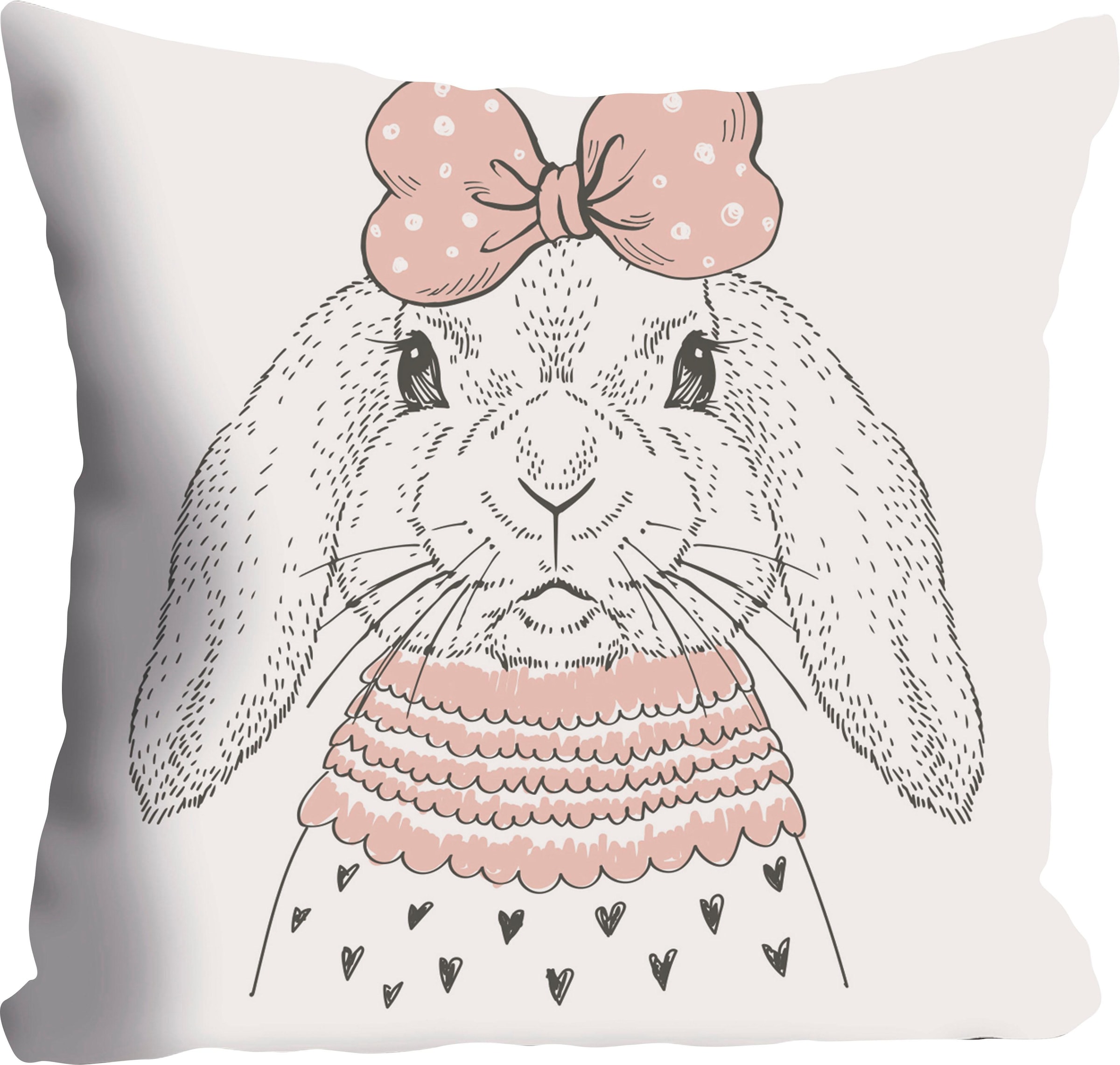 Ein originelles Wohnaccessoire in verschiedenen Räumen ist die Kissenhülle »Hase« im niedlichen Design. Als Motiv ist ein Häschen mit putziger Verkleidung und einer hübschen Schleife auf dem Kopf abgebildet. Mit seinem skandinavischen Stil harmoniert der Bezug mit modernen Einrichtungen. Ausgestattet mit einem praktischen Reißverschluss, ermöglicht er ein zeitsparendes Auf- und Abziehen. Hergestellt wird die Dekokissenhülle aus einem hautfreundlichen und weichen Material. Praktisch: Bei Bedarf lässt sie sich waschen. Ein schöner Blickfang auf dem Sofa, Sessel und Bett ist die Kissenhülle »Hase« im niedlichen Design.