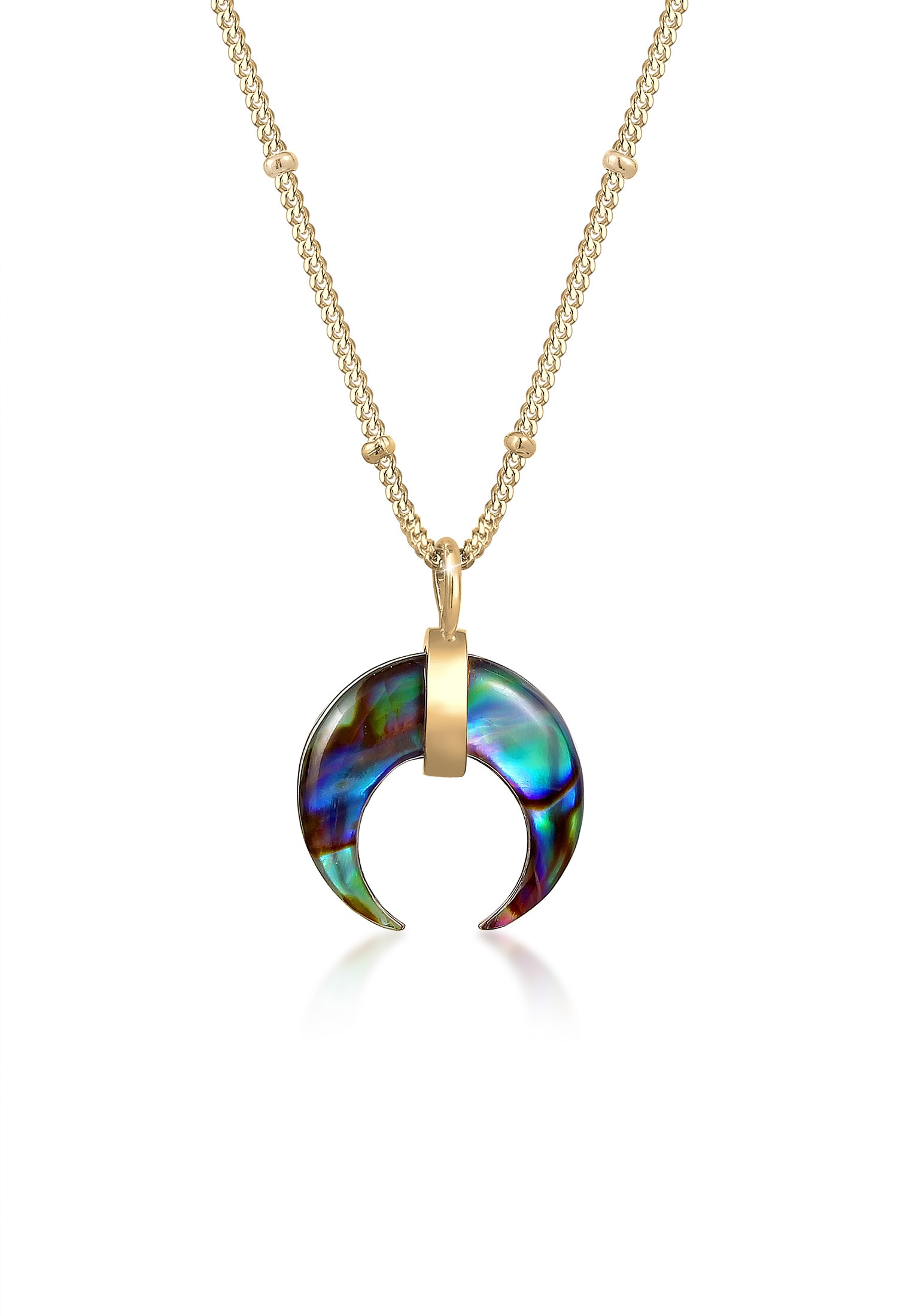 Elli Kette mit Anhänger »Halbmond Abalone Muschel und Kugelkette vergoldet«