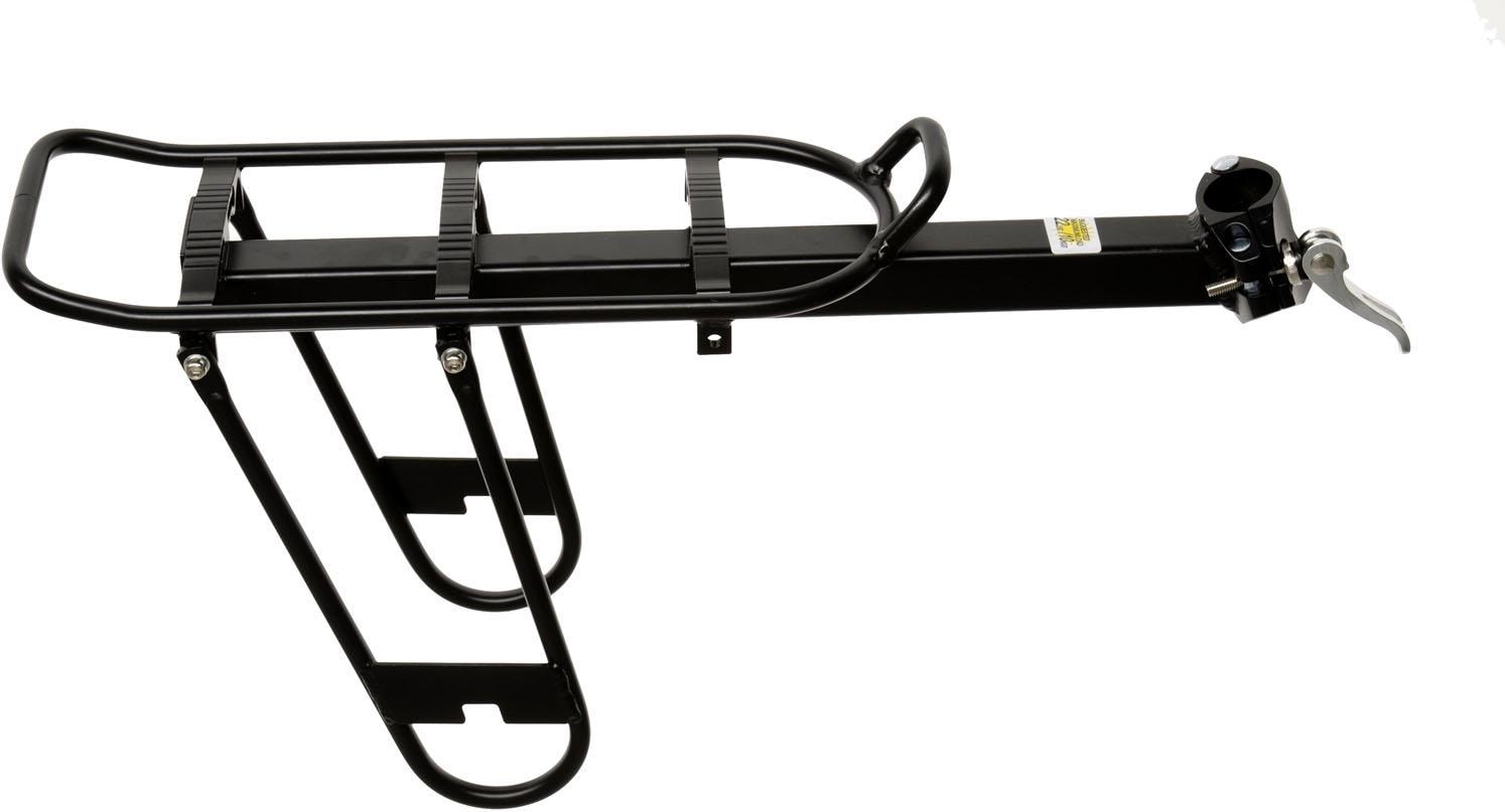 Der Sattelstütz-Gepäckträger ist universell einsetzbar an allen Fahrrädern mit einem Sattelstützdurchmesser von 25,4-31,8mm Durchmesser. Reduzierung durch Distanzstücke.Die seitlichen Bügel lassen auch eine Taschenbefestigung zu.