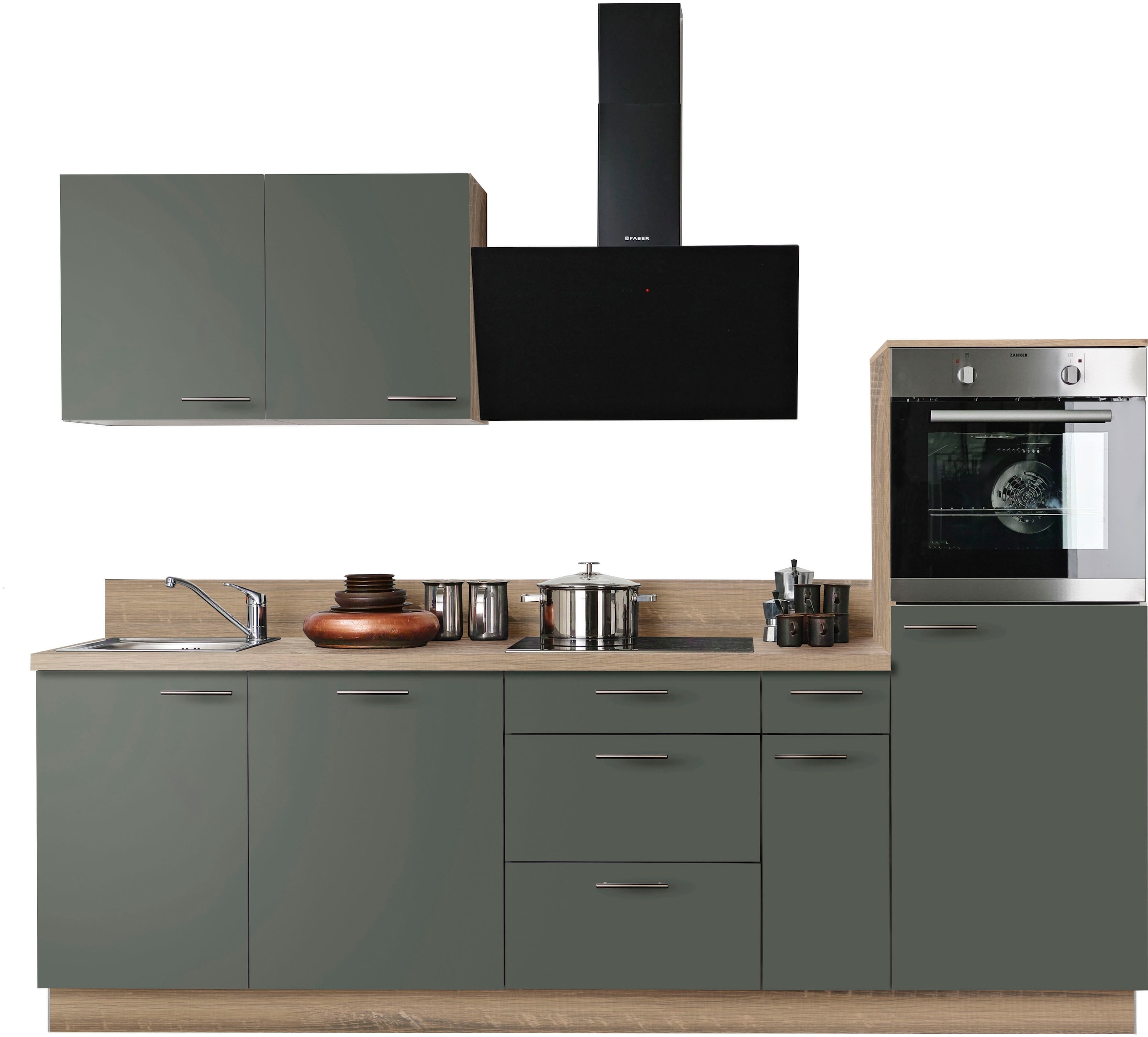 KOCHSTATION Küchenzeile »KS-Scafa, vormontiert, mit höhenverstellbaren Füßen, vormontiert, mit« Soft-Close, wahl. mit E-Geräten inkl. Geschirrspüler, Breite 260 cm