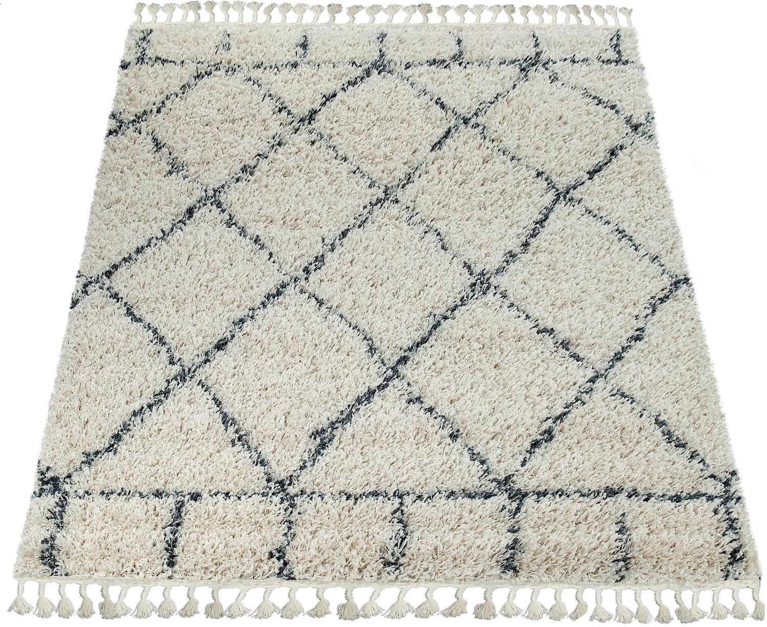 Bildquelle: Paco Home Hochflor-Teppich »Nador 755« rechteckig 54 mm Höhe weicher Shaggy mit Rauten Design und Fransen