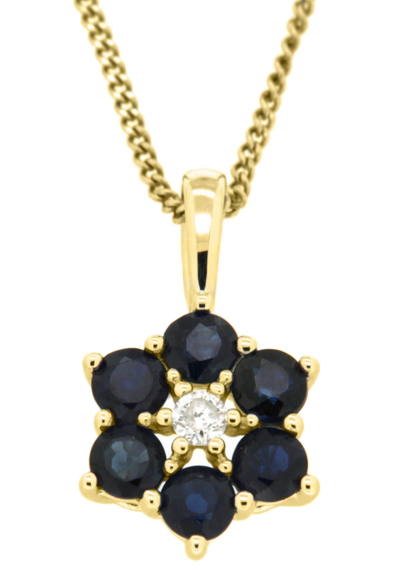 Firetti Kettenanhänger »Schmuck Geschenk Gold 333 Halsschmuck Anhänger für Halskette Blume« () mit Saphir - mit Brillant