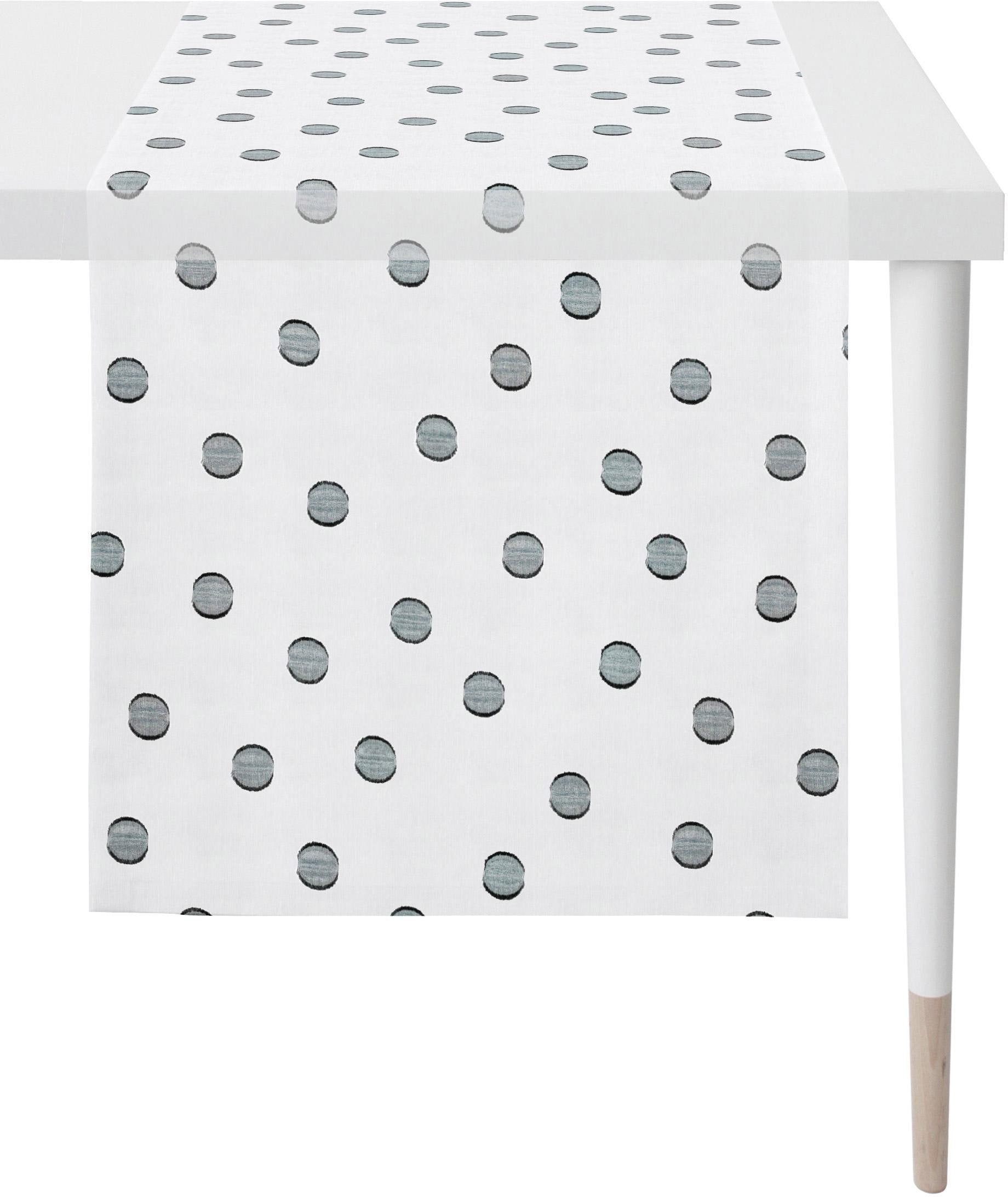 Hochwertiger Transparentstoff aus dem Hause Apelt. Der feine Scherli-Stoff mit Punkte-Allover eignet sich besonders für den liebevoll gedeckten Tisch. Der Läufer aus hochwertigem Material ist pflegeleicht und wie geschaffen für die zeitgemäße Einrichtung. Waschbar bei 30°C im Schonwaschgang, feucht aufhängen. Material: 100% Polyester. Maße ca. 48x135 cm.