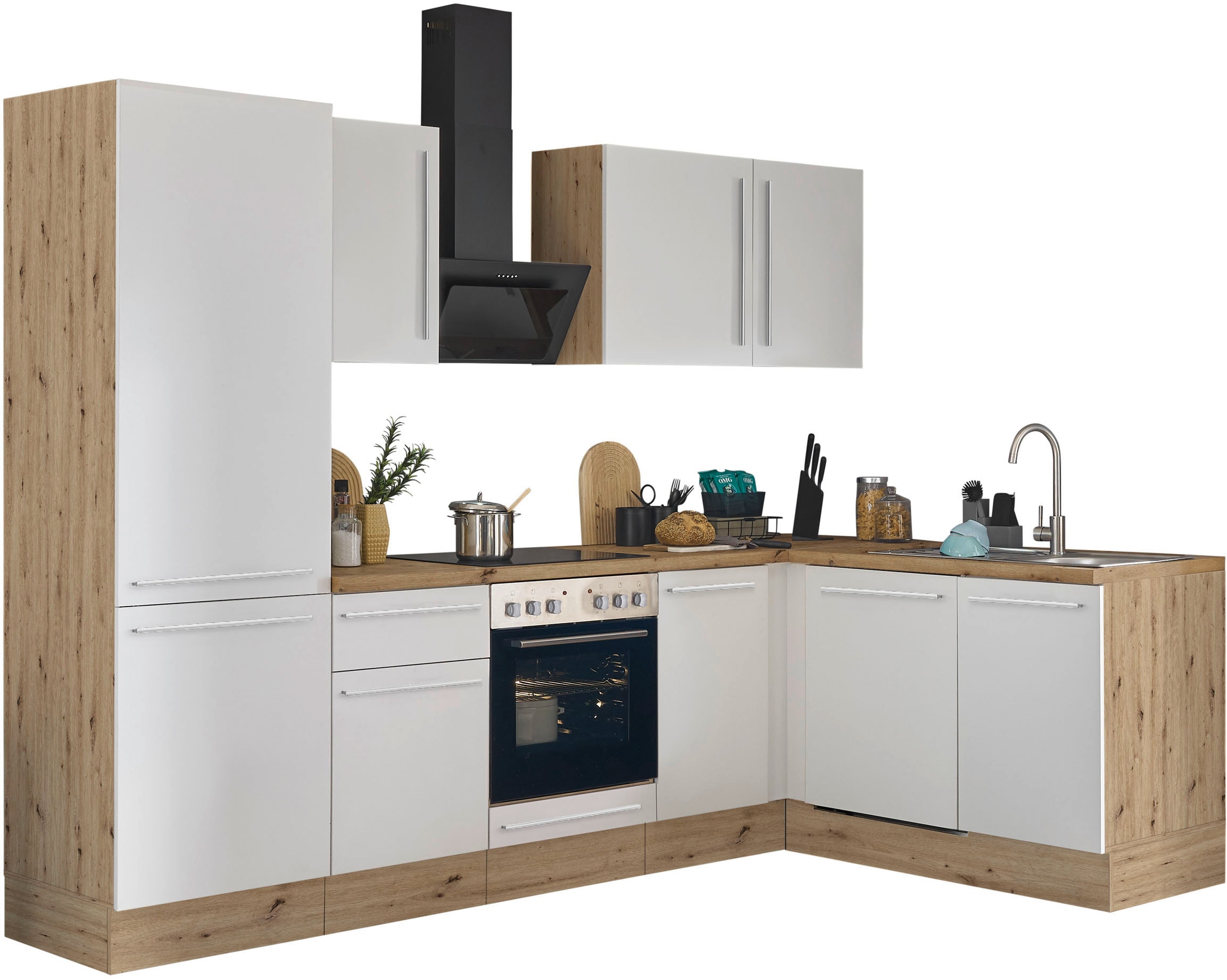 - Winkelküche »KS-Luhe« Stellbreite 240x270 cm, wahlweise mit oder ohne E-Geräten,...KOCHSTATIONUrsprünglicher PreisUVP 3.129,00 €Rabatt- 755,01 €Aktueller Preisab 2.373,99 €KühlschrankProduktdatenblattGeschirrspülerProduktdatenblattDunstabzugshaubeProduktdatenblattHerd-SetProduktdatenblatt