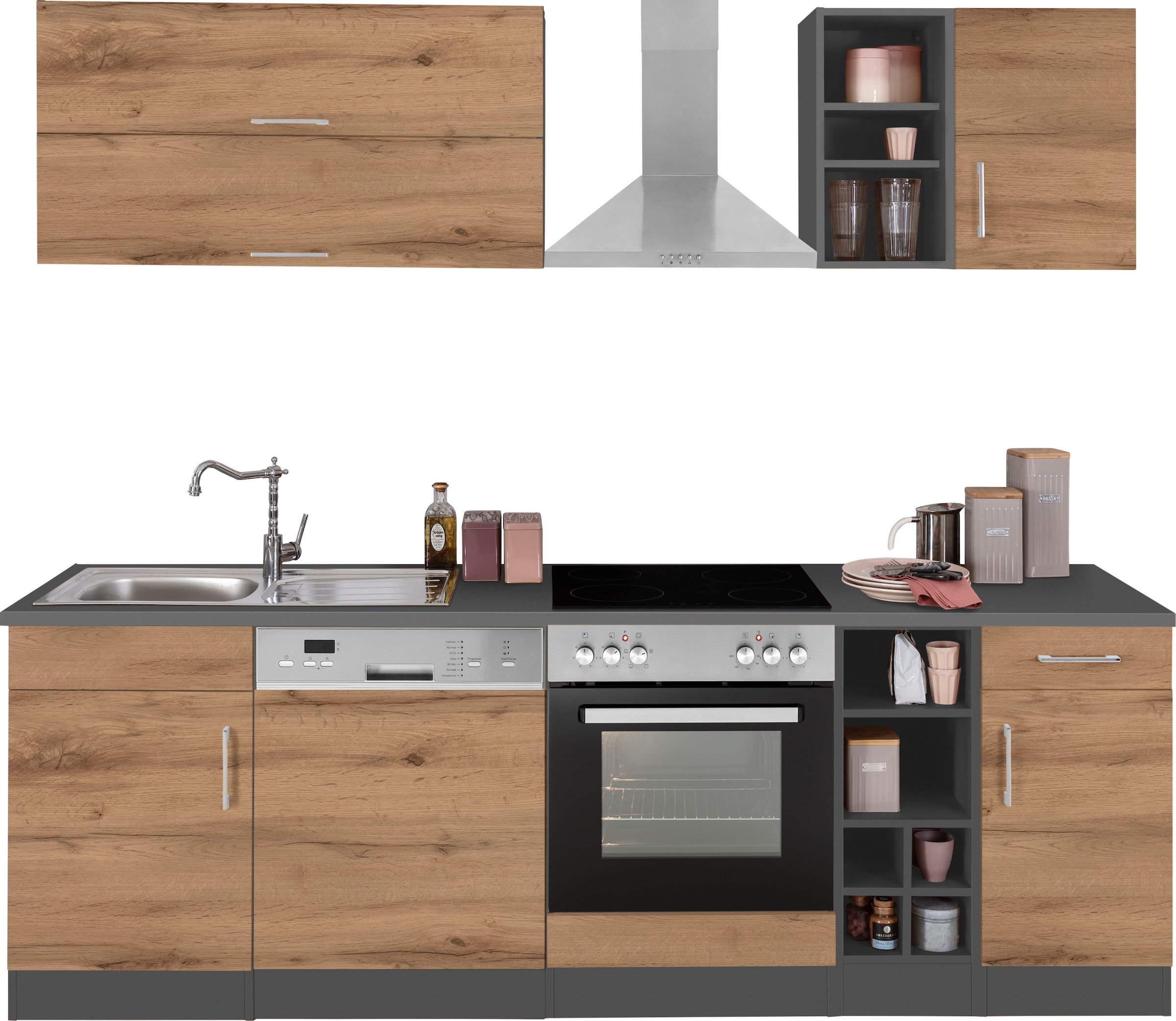 - Küchenzeile »Jazz« Breite 280 cm, wahlweise mit E-GerätenBASIC by BalculinaAktueller Preisab 888,99 €KühlschrankProduktdatenblattBackofenProduktdatenblattGeschirrspülerProduktdatenblattDunstabzugshaubeProduktdatenblatt