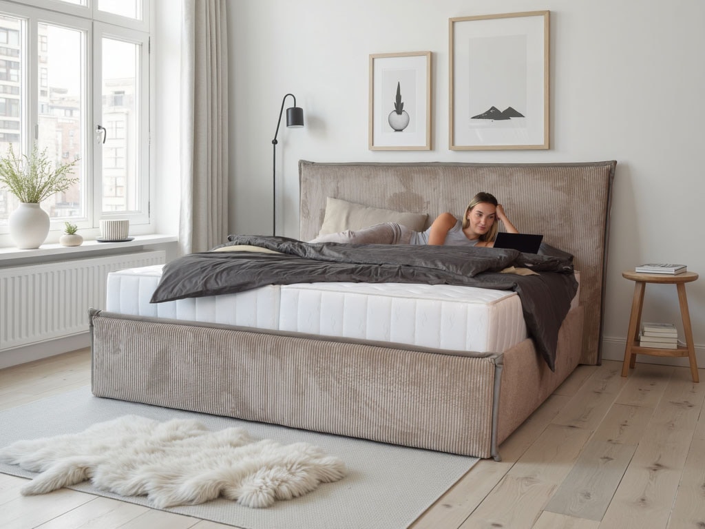 - Modernes Polsterbett mit praktischem Liftmechanismus und zwei großzügigen Schubladen für zusätzlichen Stauraum.