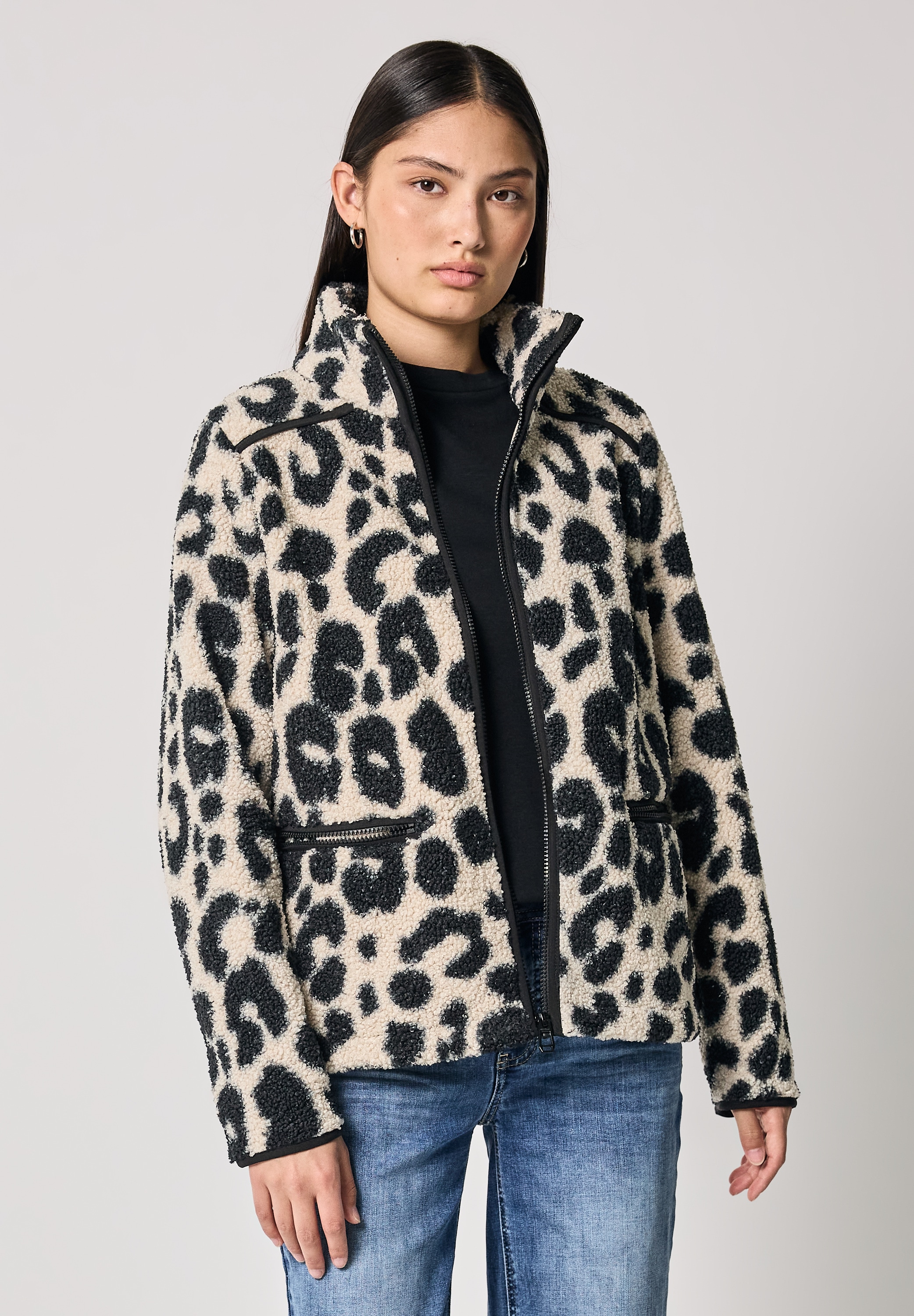- Blouson ohne Kapuze;Markenlabel mit Leo-Print, Fake Fur mit Tunnelzug am SaumSTREET ONEAktueller Preis119,99 €