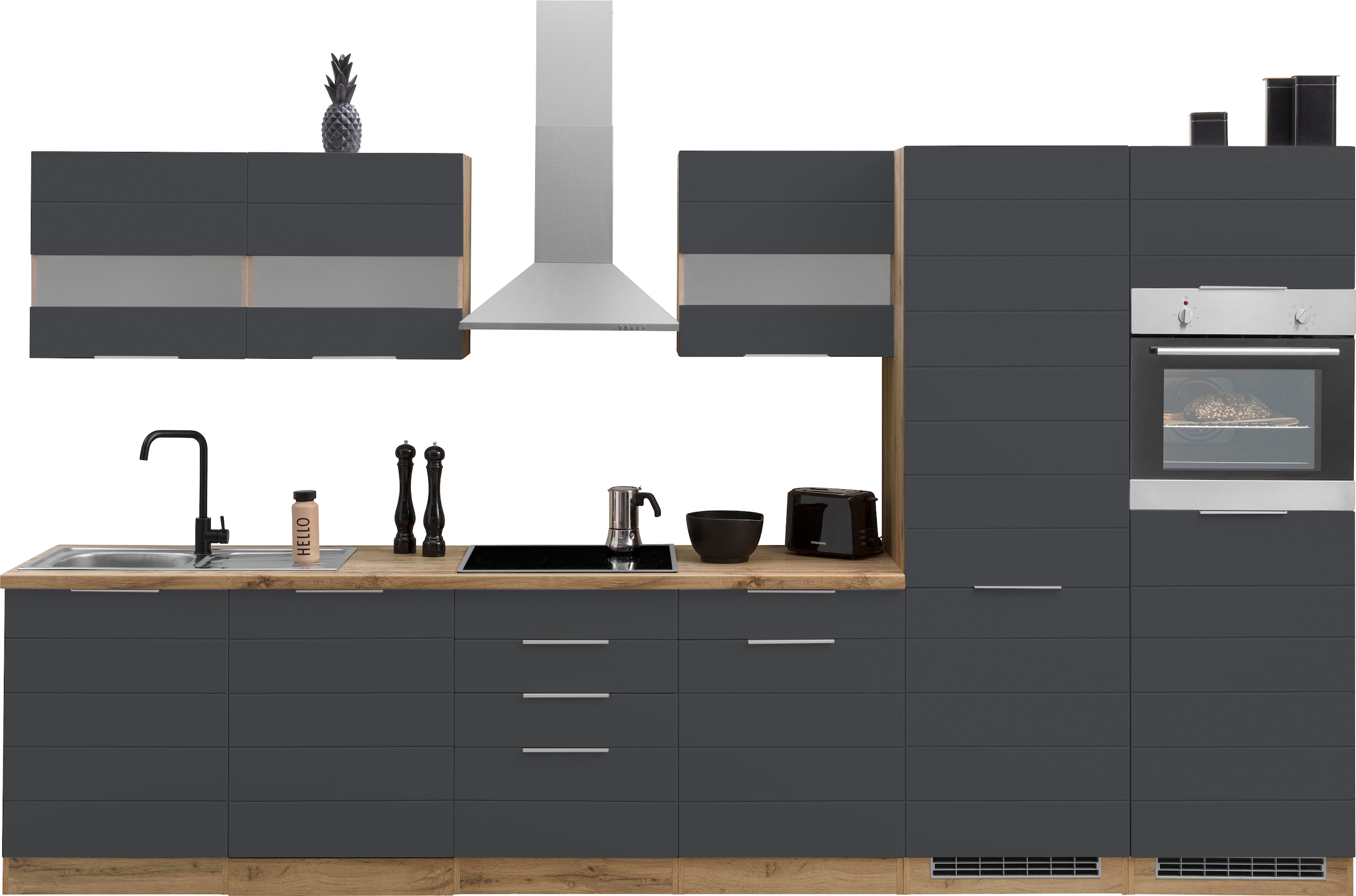 - KOCHSTATIONKüchenzeile »KS-Paris« mit E-Geräten, Breite 330 cm, wahlweise mit Induktionskochfeld