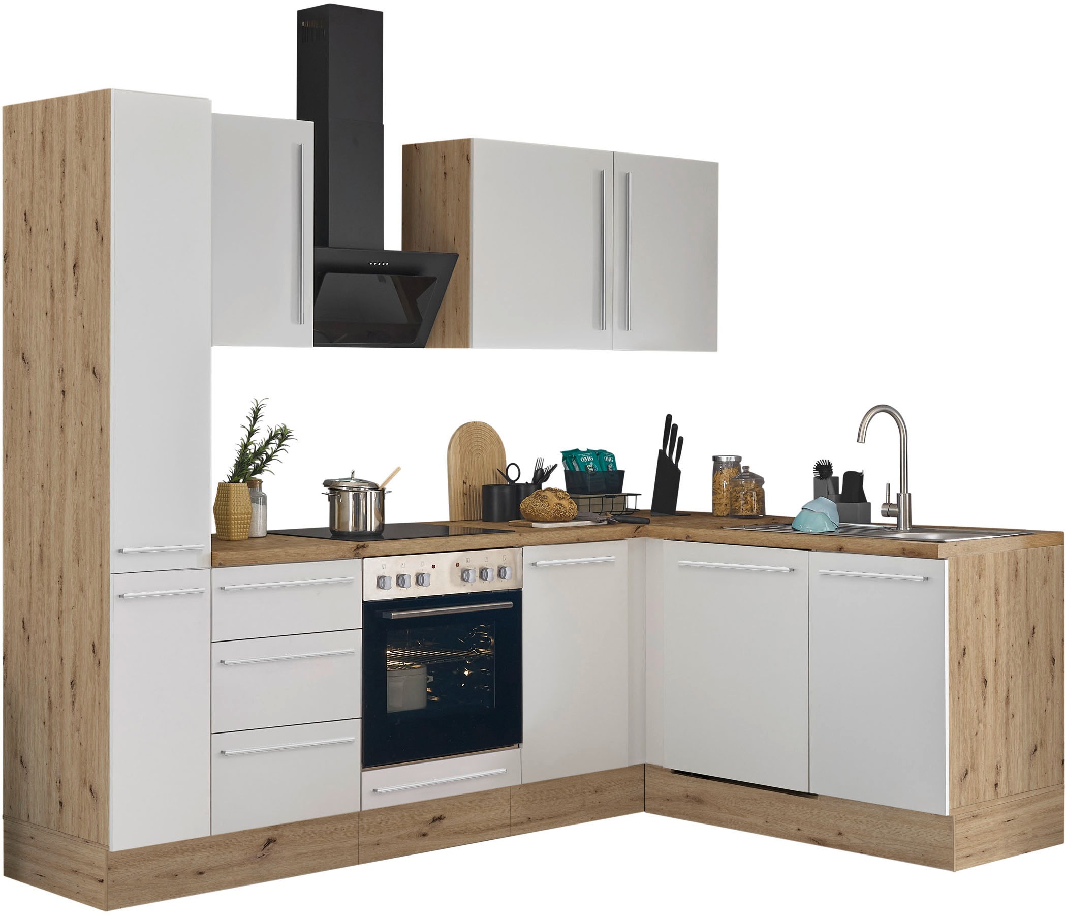 - Winkelküche »Florida, Stellbreite 250x165 cm« wahlweise mit E-Geräten, mit Softclose...KOCHSTATIONUrsprünglicher PreisUVP 1.359,00 €Rabatt- 187,01 €Aktueller Preisab 1.171,99 €
